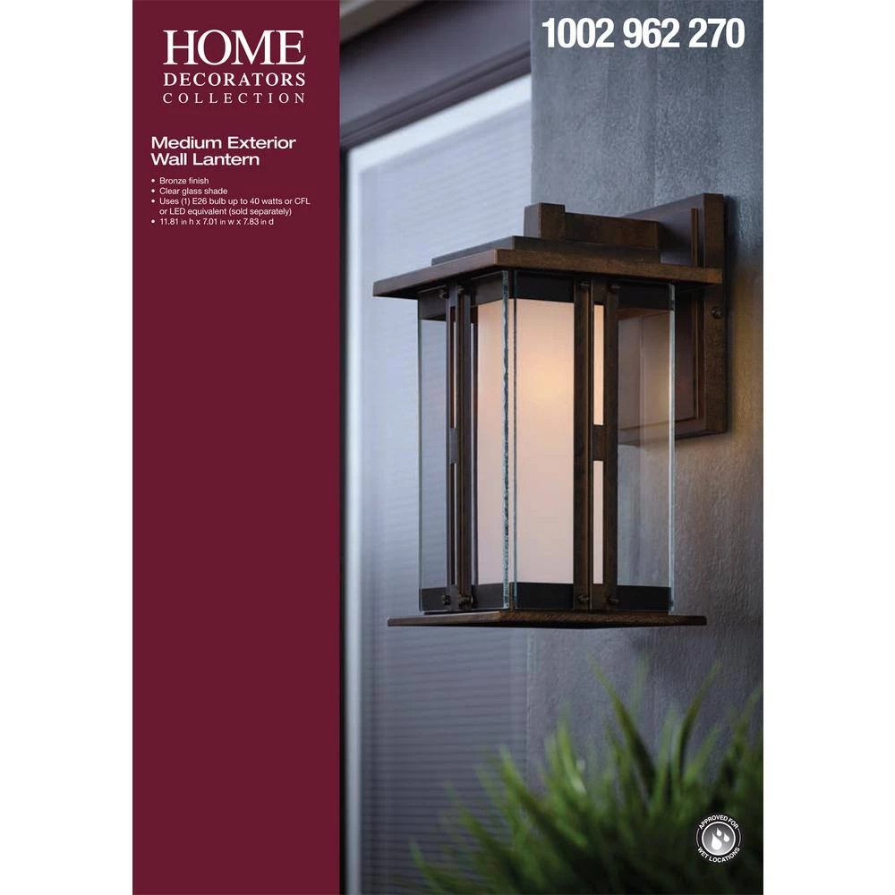 This lantern features a simple, elegant design that complements the decor of any home. The clear glass provide a classic look from the fixture and a warm glow from the light. The sturdy, weather resistant cast aluminum construction and waterproof seal protect the lantern from harsh outdoor elements to ensure the long life of the fixture.