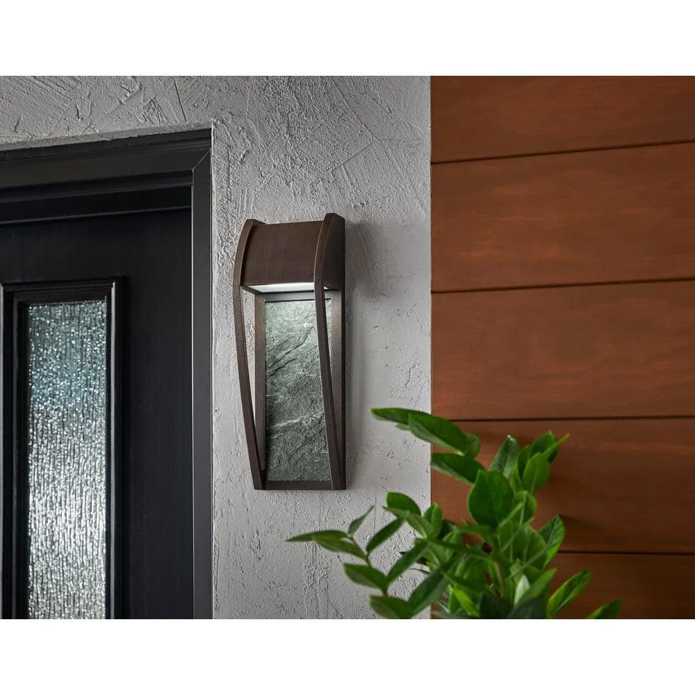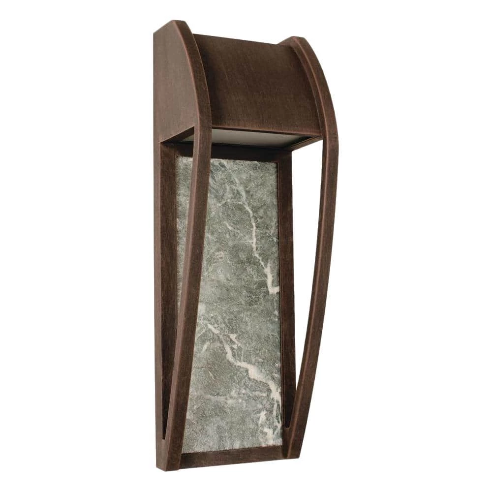 Using only 10-Watt of power, this energy efficient outdoor wall sconce costs little to operate. It has an industrial metal design with a natural Ceramic stone look. The Beautiful Bronze Patina finish goes with any exterior finish offering a contemporary ceramic stone look with its industrial metal design. The integrated long life LED technology makes the sconce easy to maintain and requires no lamping replacement.