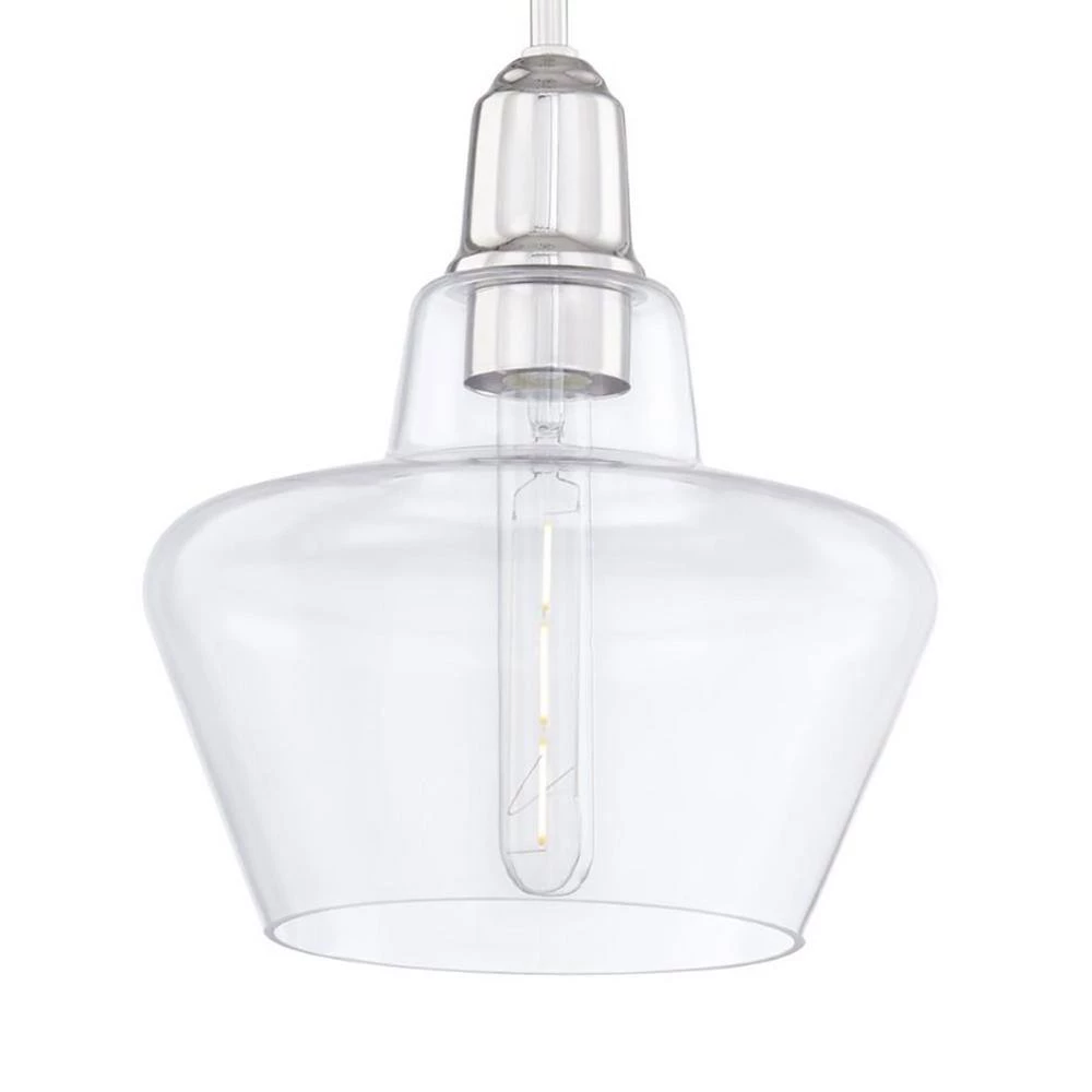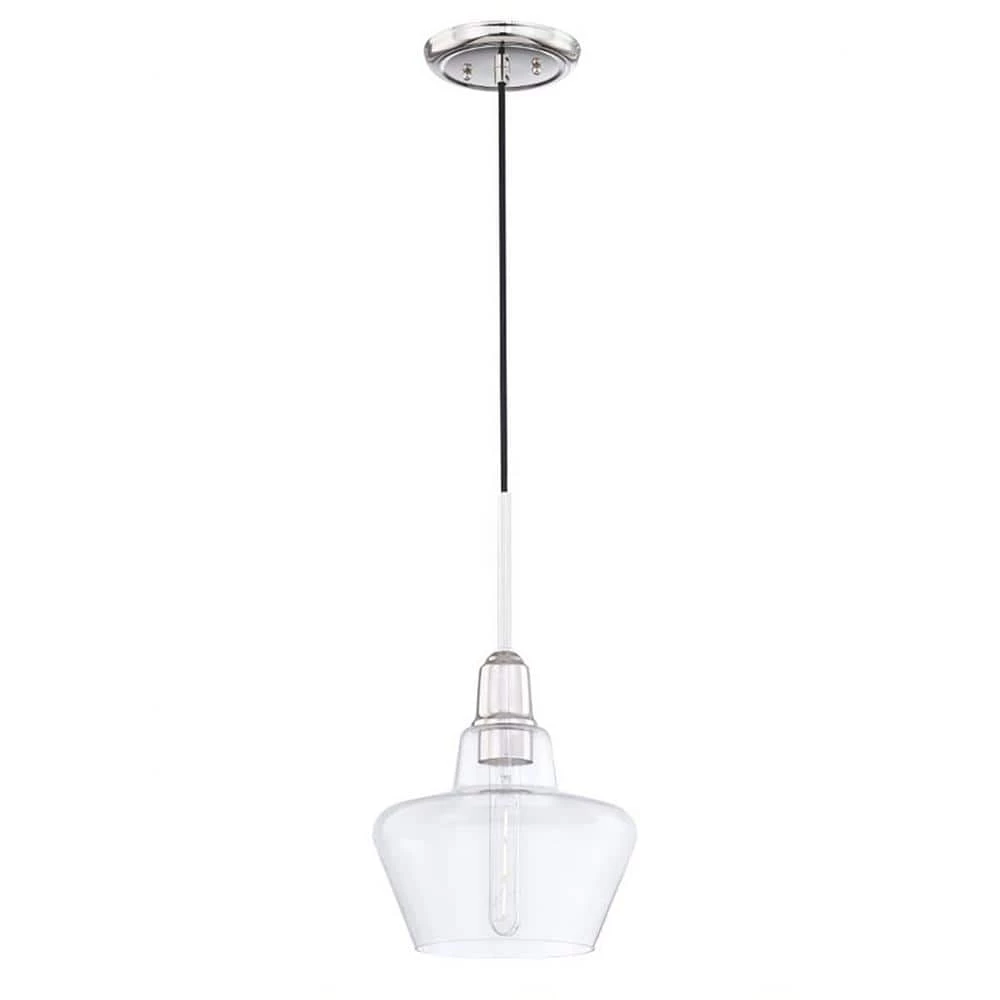 A light polished nickel finish accentuates Wilkerson’s mid-century modern vibe. The 60-Watt vintage bulb adds bright yet warm light. With a polished nickel fitter suspended using a covered cord, the Wilkerson adds inviting beauty to any room.