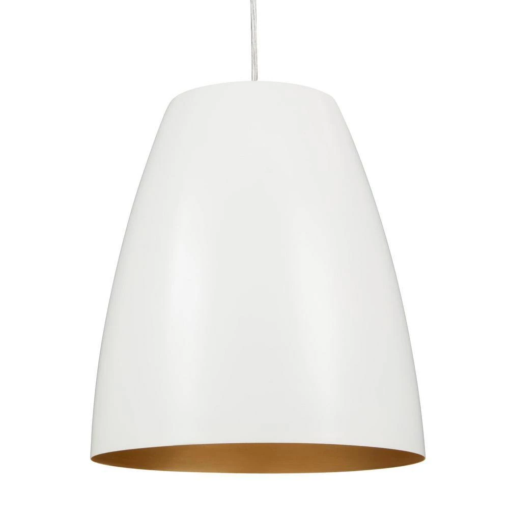 This single light pendant is all about the geometric shape and contrast of finishes. The clean white finish outside is balanced with chic gold finish inside as a perfect complement to each other. Hanging over your kitchen island as a single or a cluster it will enhance by its simplicity and beauty. A unique design with timeless appeal.