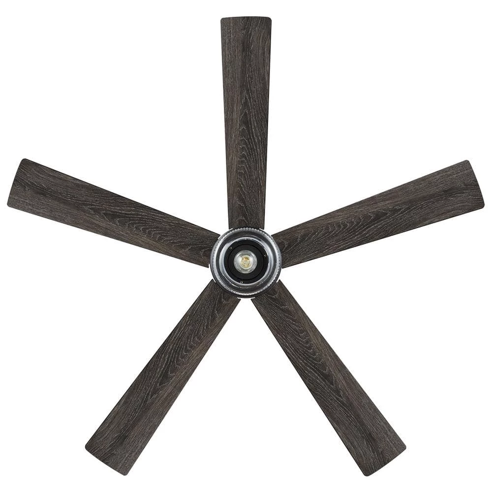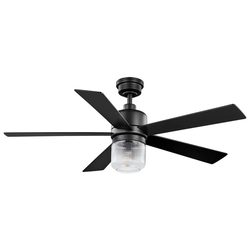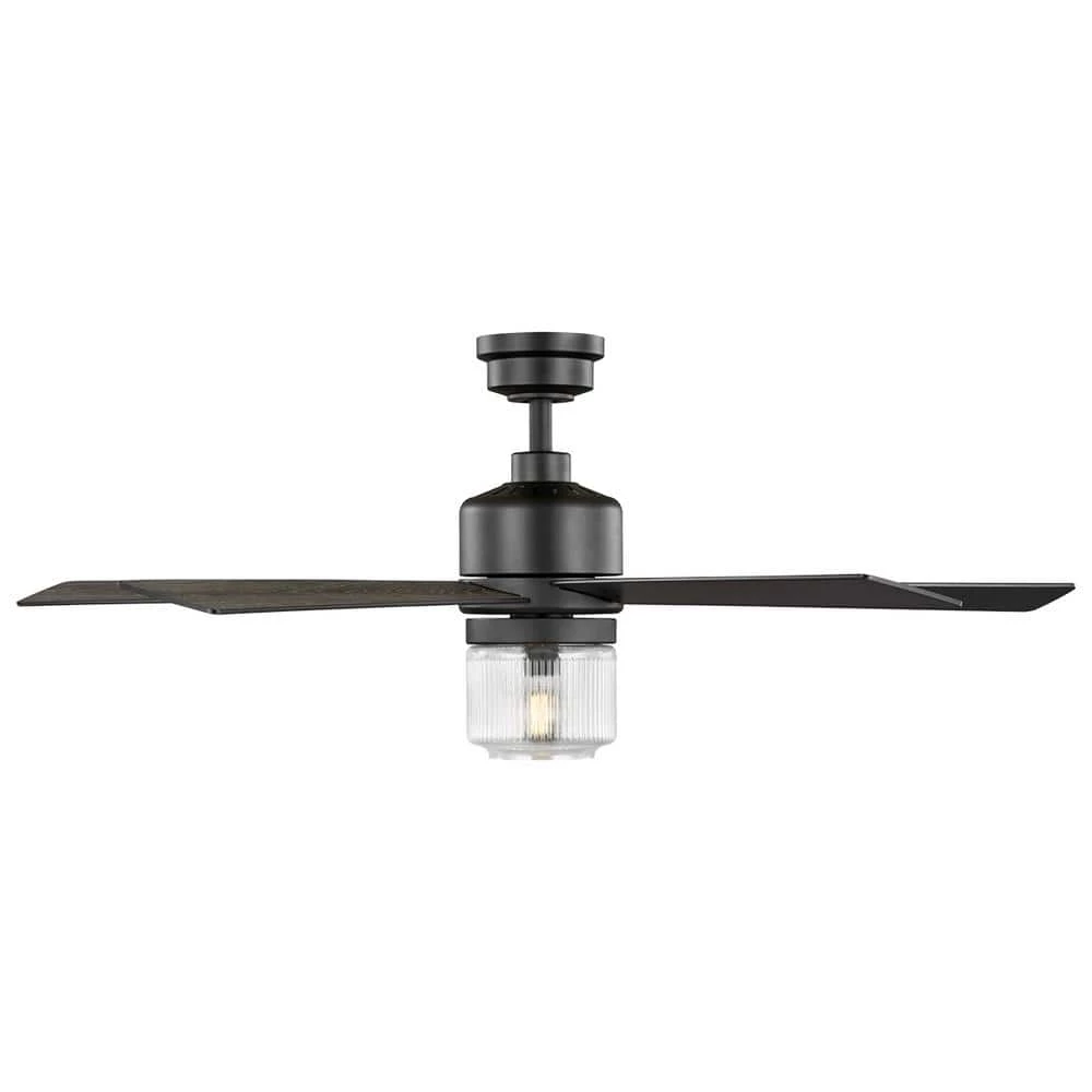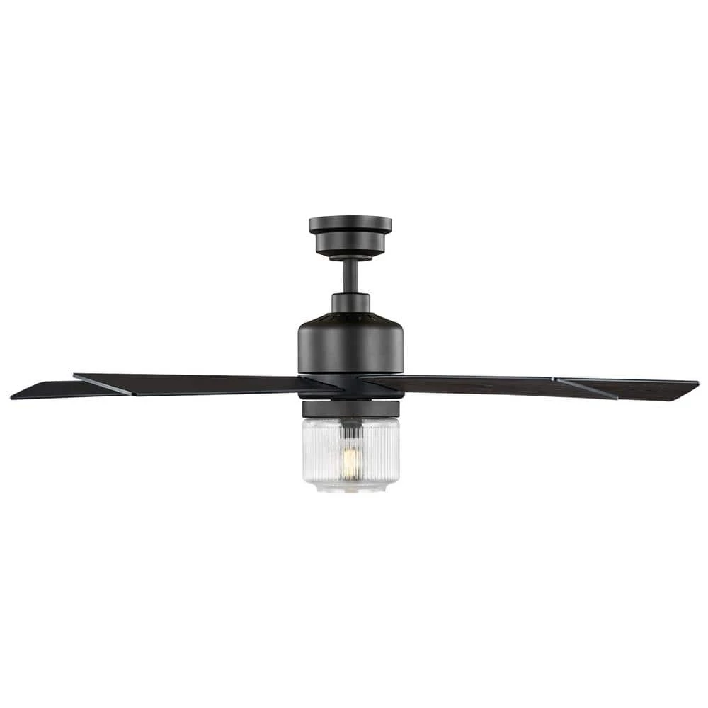 The 52 in Veterno ceiling fan from Home Decorators Collection is an artistic twist on traditional style. The sleek design is appointed with a stark matte black finish coupled with 5 reversible blades in cerused ash and black finishes to easily blend with your indoor decor. The beautiful clear textured glass light kit uses one 6.5-Watt LED bulb. A convenient hand-held remote control is included to easily control the fan’s 3 speeds and light (on/off/dimming). The powerful and quiet motor will provide ample airflow for your indoor large room living spaces (up to 324 sq. ft.).