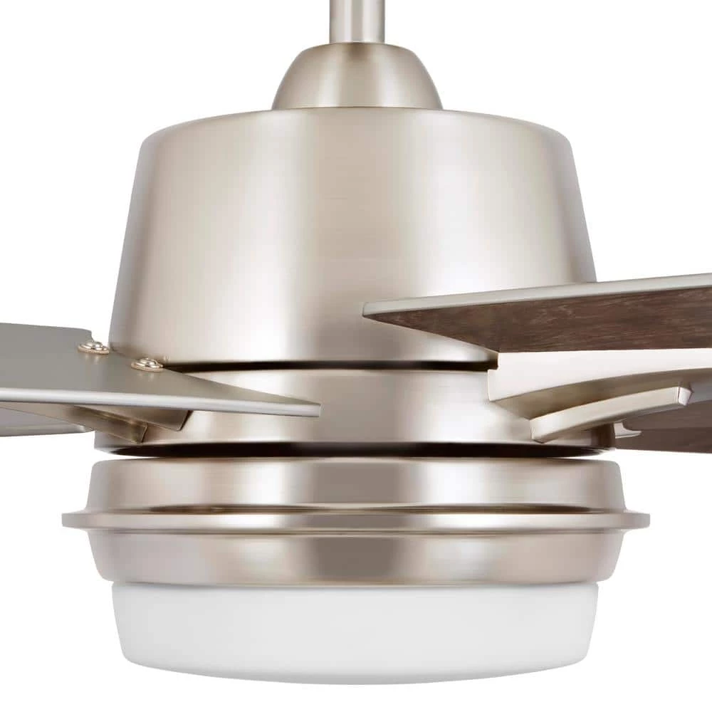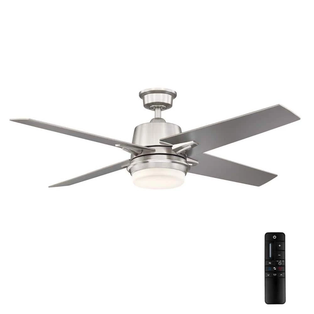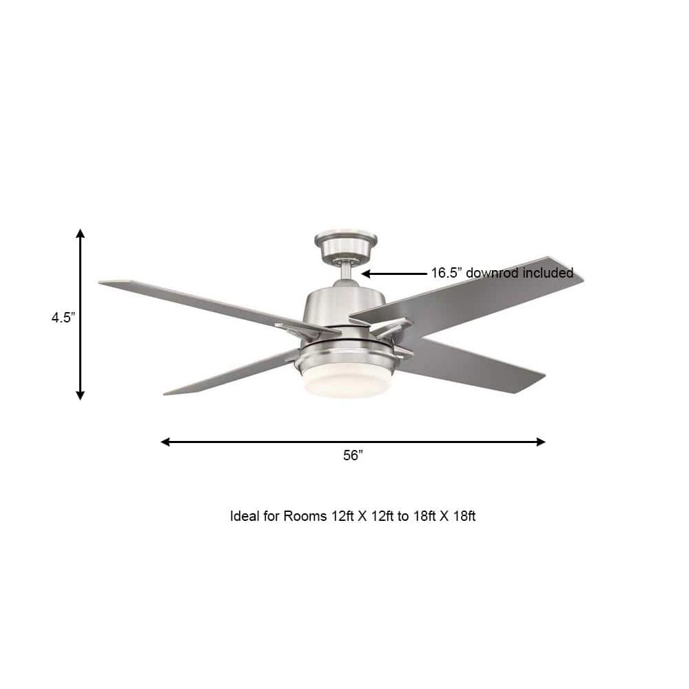 The Home Decorators Collection Montel 56 in. LED Indoor Brushed Nickel Ceiling Fan has a very modern design and is perfect for great rooms. The included remote control operates the 9-speeds, light dimming, timer and random breeze functions. The lifetime motor warranty offers peace of mind for reliable air circulation. DC motor fans are 70% more energy efficient than AC motor fans (when comparing efficiency (CFM/W) of DC vs AC motors in published FTC Energy Guides for ceiling fans).