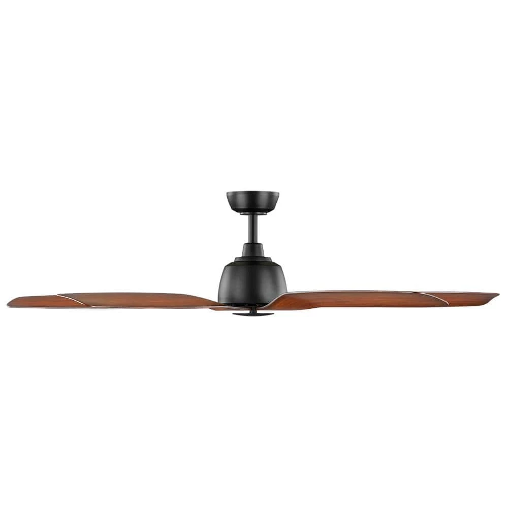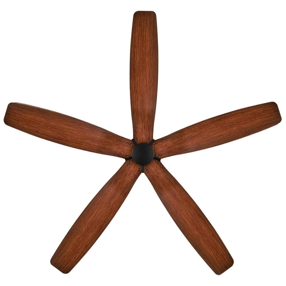 The 60 in. Sirrine Smart Ceiling Fan from Home Decorators Collection is the perfect way to add a ceiling fan to your smart home ecosystem. This fan offers a variety of control options: remote control (included), control via your smart device (phone or tablet) with the HubSpace App or voice control with Alexa or Google Assistant. The modern design combines a matte black housing with unique shaped koa finish blades to create a stunning focal point for your indoor or covered outdoor living areas. The powerful, efficient and quiet DC motor operates at 5 different speeds to provide more options than standard AC motor fans. Control is at your finger tips with the included remote control that includes a wall cradle for convenient storage when not in use.