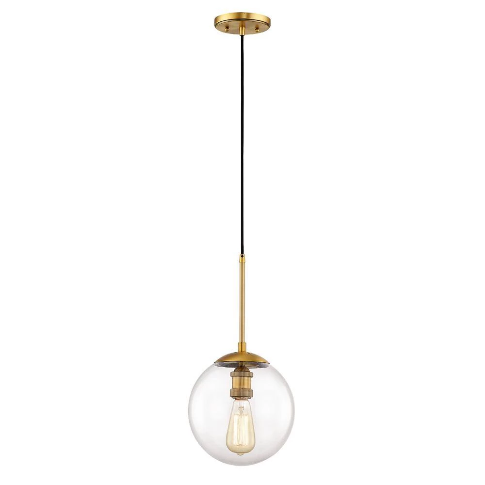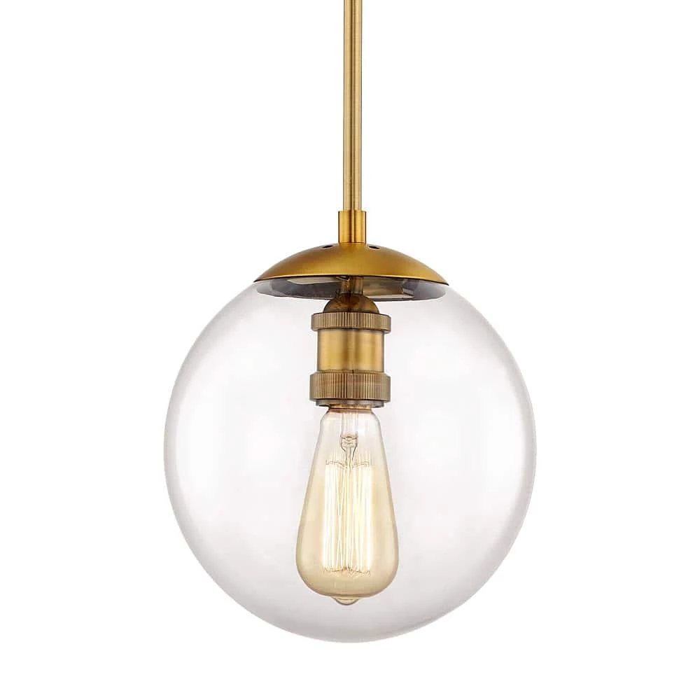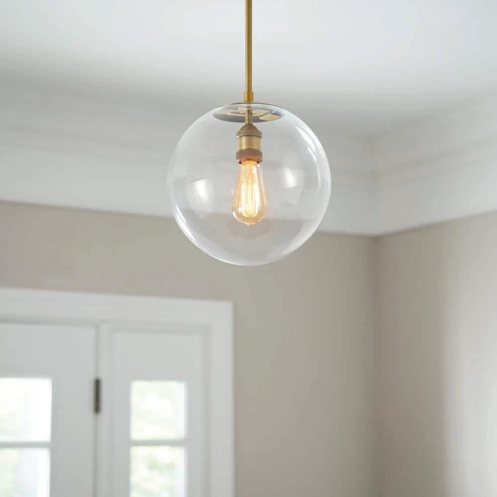 Featuring a hand blown glass shade and unique steel construction, this 1-light Globe Pendant is a perfect addition to your kitchen, or island. The ceiling mount design is great for vaulted ceilings and includes a 6 ft. cloth covered cord that can be easily adjusted.