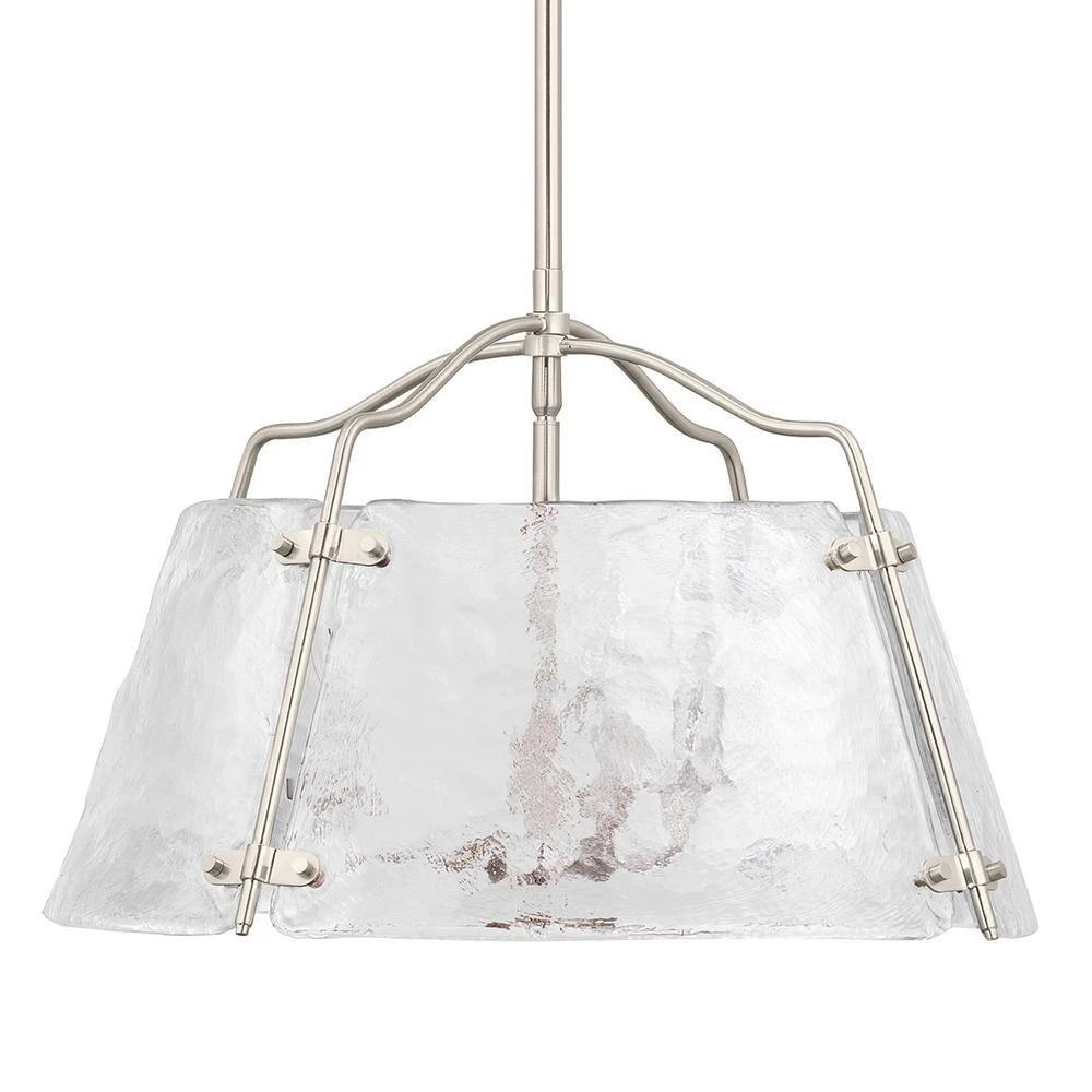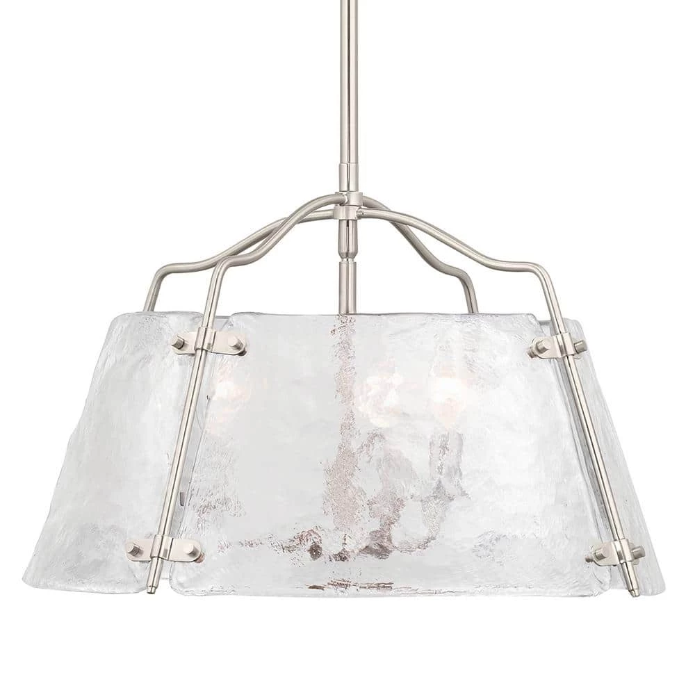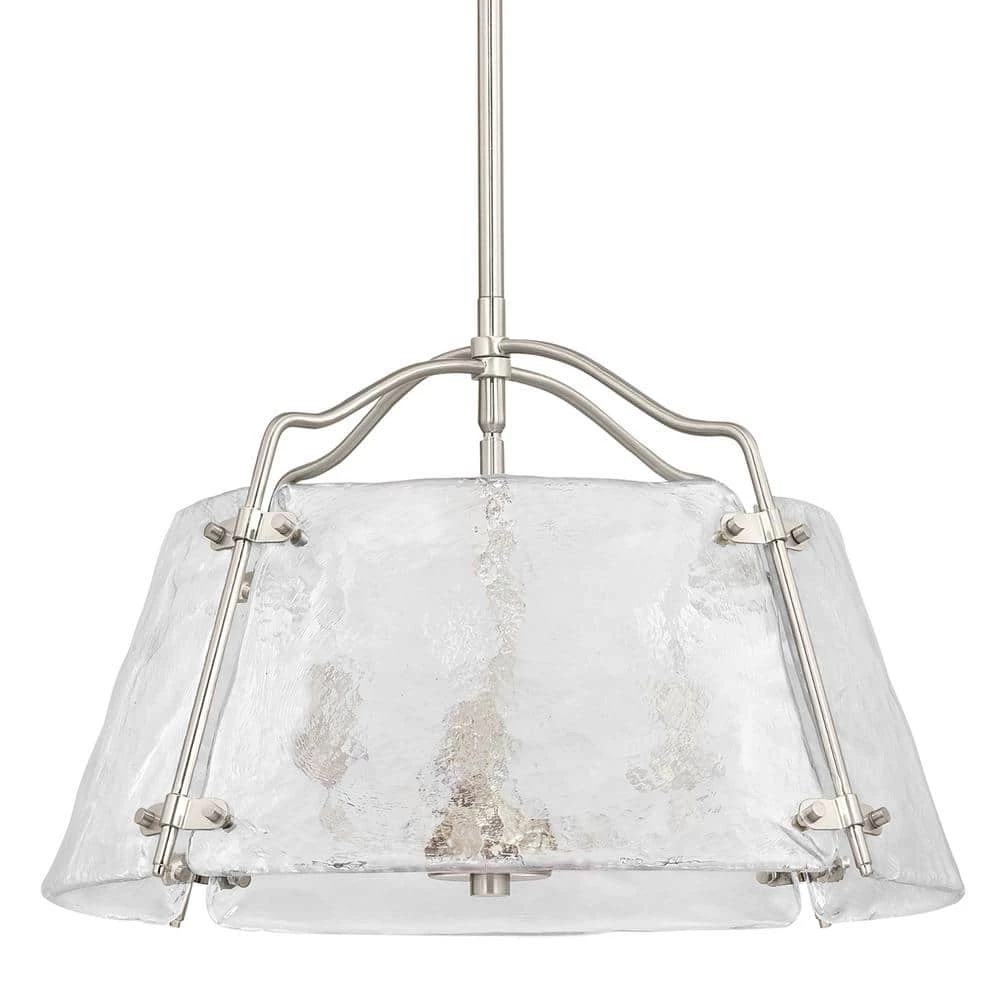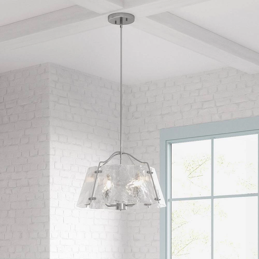 Add a touch of sophistication to your home with our Archdale chandelier. The Archdale 3-light chandelier in brushed nickel provides brilliance as well as elegance to a space. The on-trend detail of the clean, clear hammered water glass shade has a charming look that is sure to complement any fashionable, transitional home.