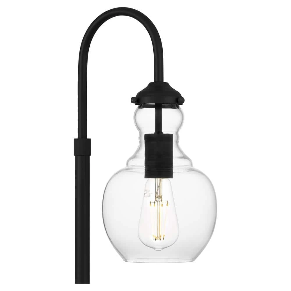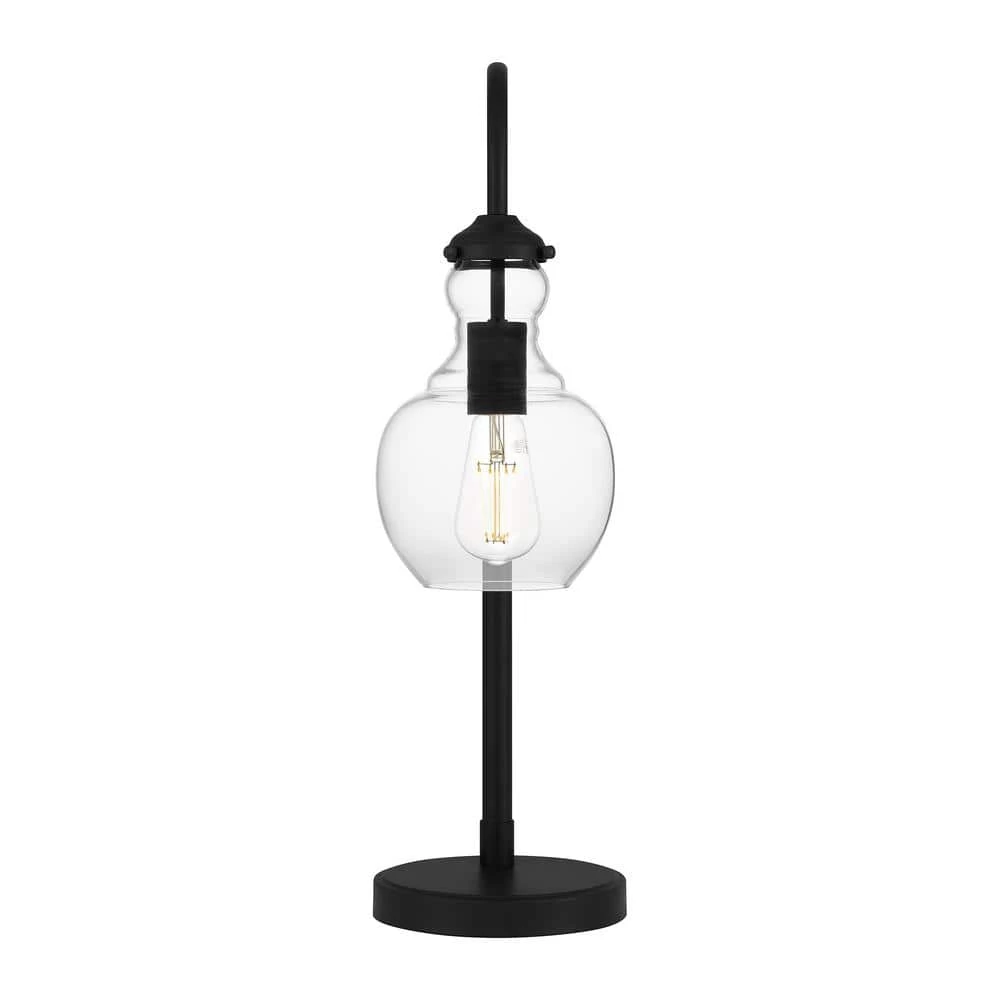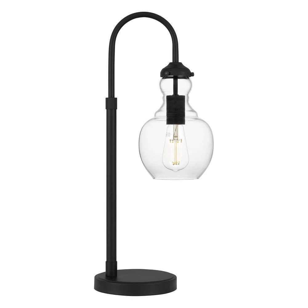 Heavily pulling from elements of mid-century modern styling, this 1-light table lamp is the perfect addition to any room. Designed with a classic matte black finish, the curving arc of the fixture body is capped with a globe-shaped clear glass shade that offers a warm, ambient glow. Pair two on matching end tables for a polished finishing touch to your room design. Shop the rest of the Bakerston collection for additional colorways and similarly designed items.