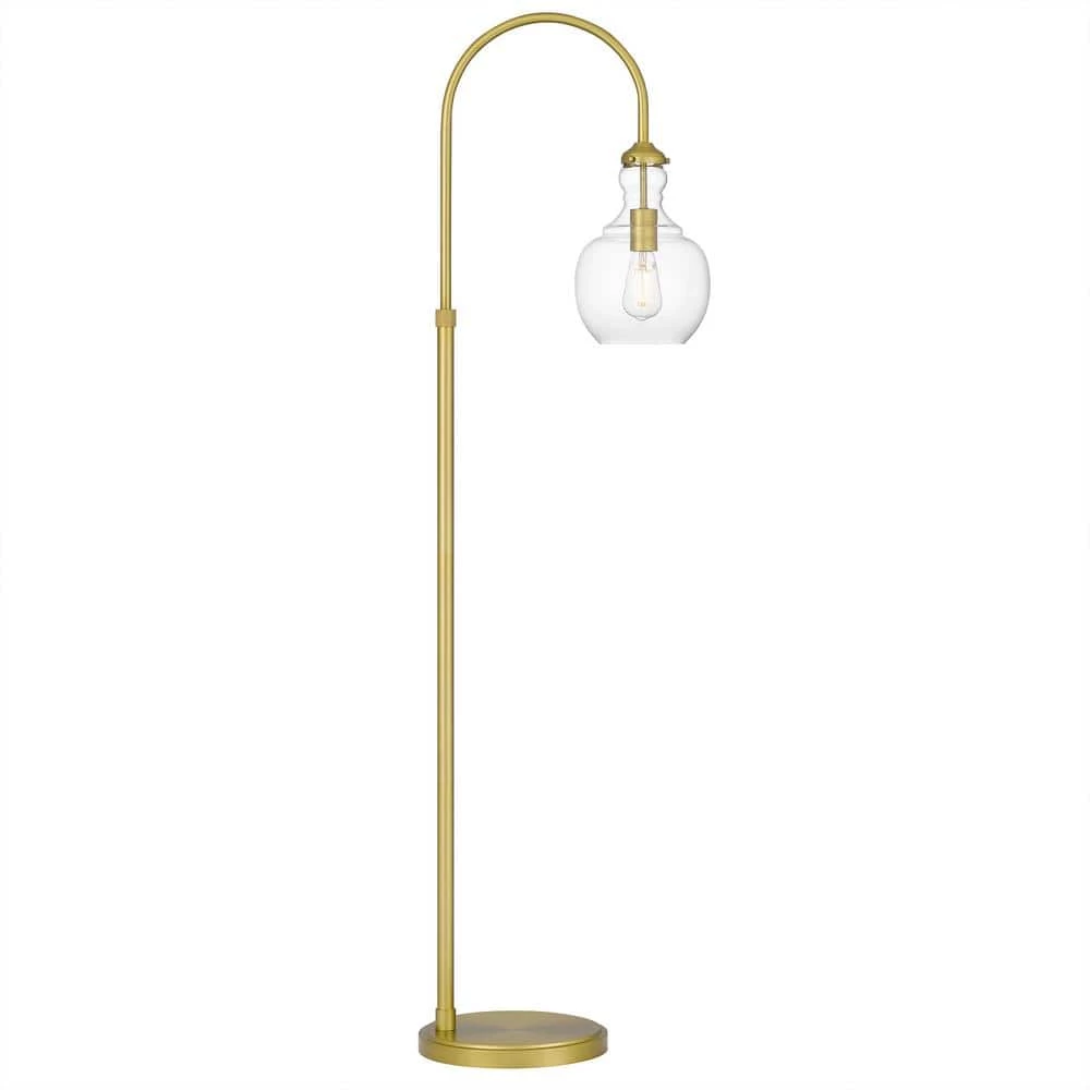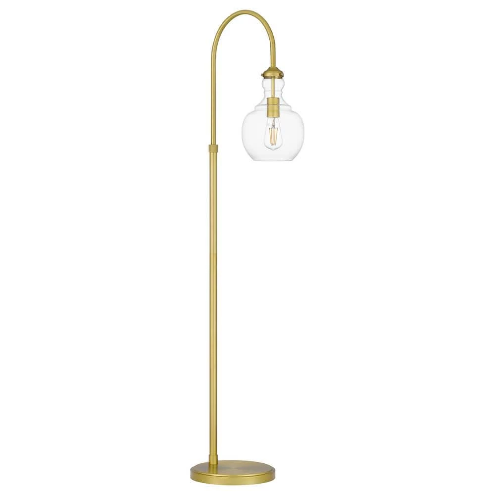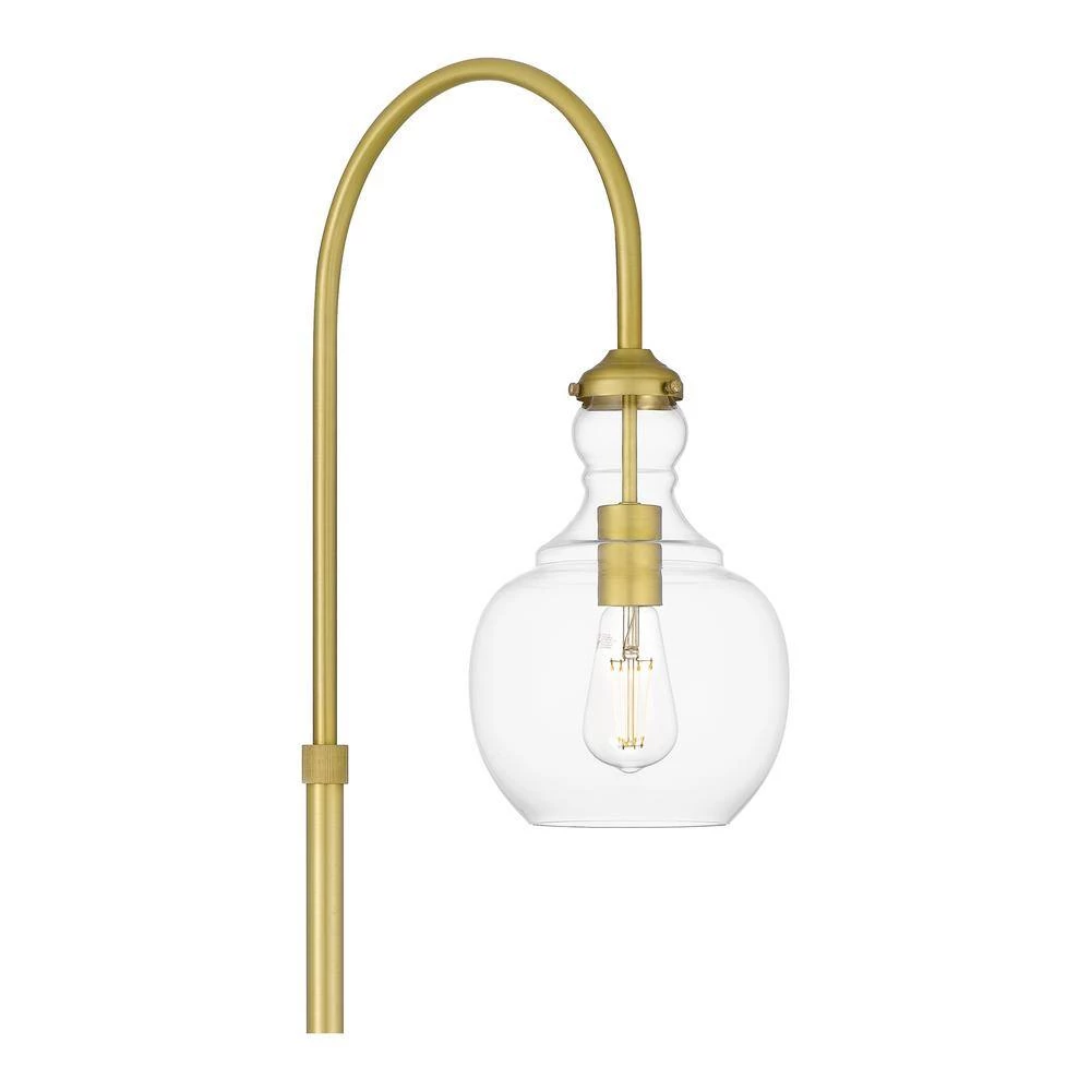 Heavily pulling from elements of mid-century modern styling, this 1-light floor lamp is the perfect addition to any room. Designed with a brushed brass finish, the curving arc of the fixture body is capped with a globe-shaped clear glass shade that offers a warm, ambient glow. Shop the rest of the Bakerston collection for additional colorways and similarly designed items.
