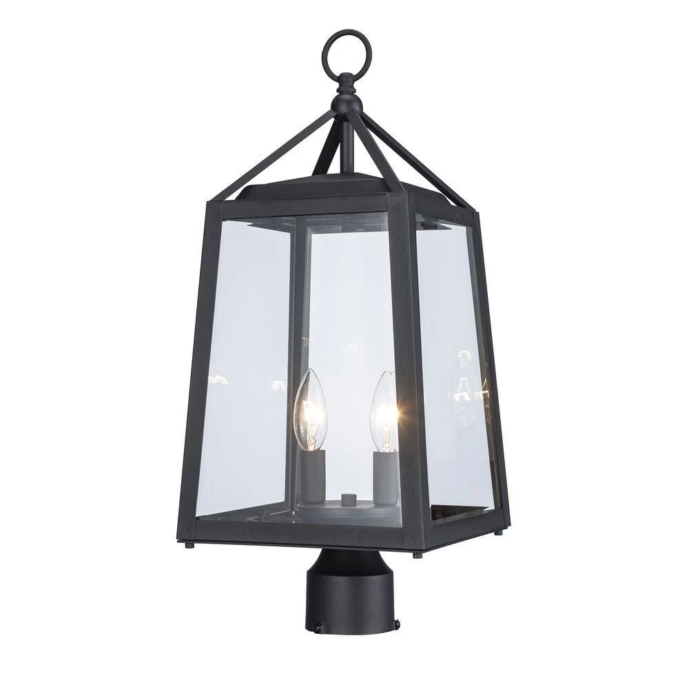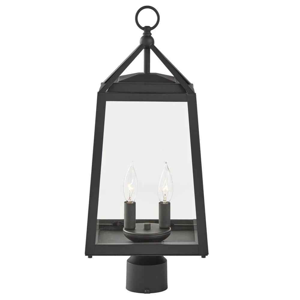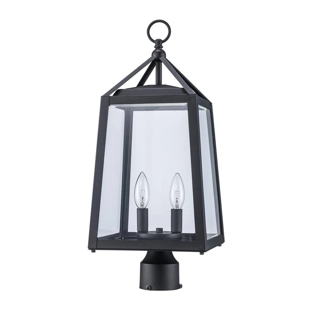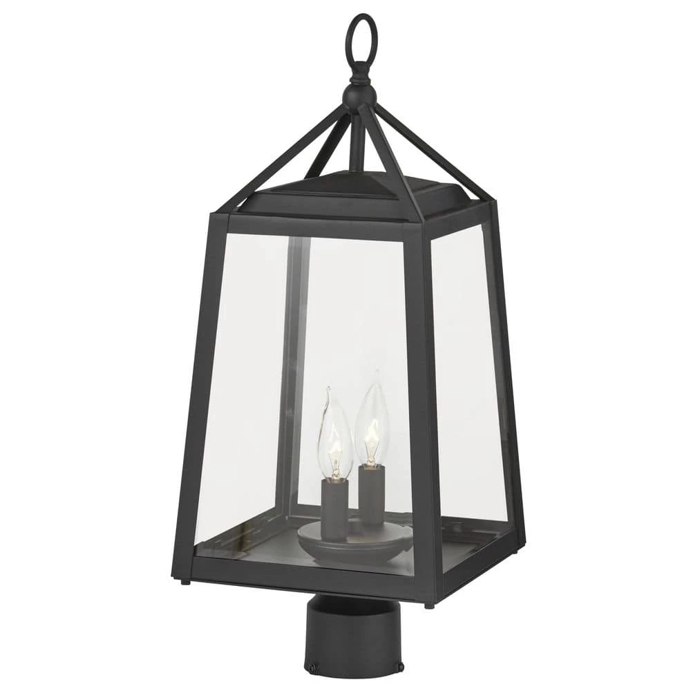 The Blakeley Collection from Home Decorators Collection features transitional style outdoor lighting suitable for a wide variety of home styles, from farmhouse to traditional. The Blakeley 2-light outdoor post mount lantern is the largest post top fixture in the collection, an ideal size for illuminating landscaped areas, walkways, paths and steps. The candelabra light bulbs are fully visible behind the clear beveled glass sides, allowing for ample light output. Mount this post light atop a standard light pole or use with a pier mount adapter to install on walls, columns, mailboxes and more. The Blakeley family is offered in a classic black finish which will coordinate well with many existing decor styles and pieces. Shop the Blakeley Collection for additional light counts and outdoor lighting fixture types.