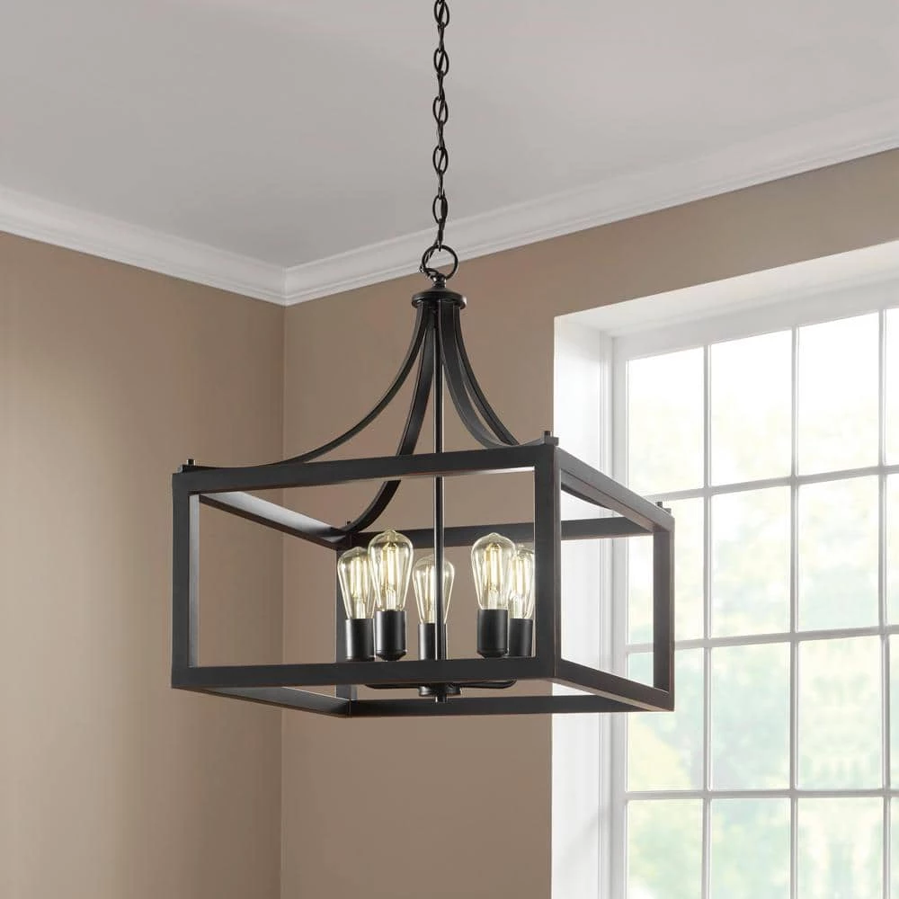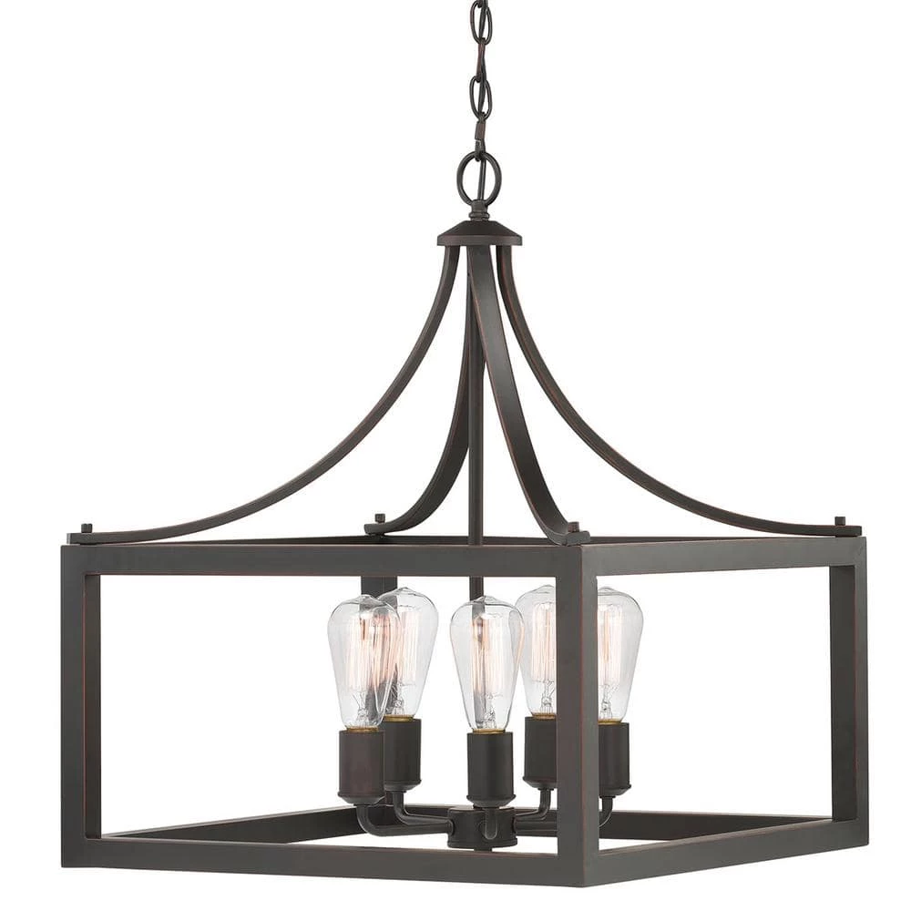 A fun and fresh five-light pendant inspired by nautical accents. The open frame is popular in a variety of today’s home designs and is finished in a Distressed Black finish. Pendants can be used in lieu of chandeliers for creative design schemes, displayed individually or paired in groupings over kitchen islands, dining room tables and in foyers.