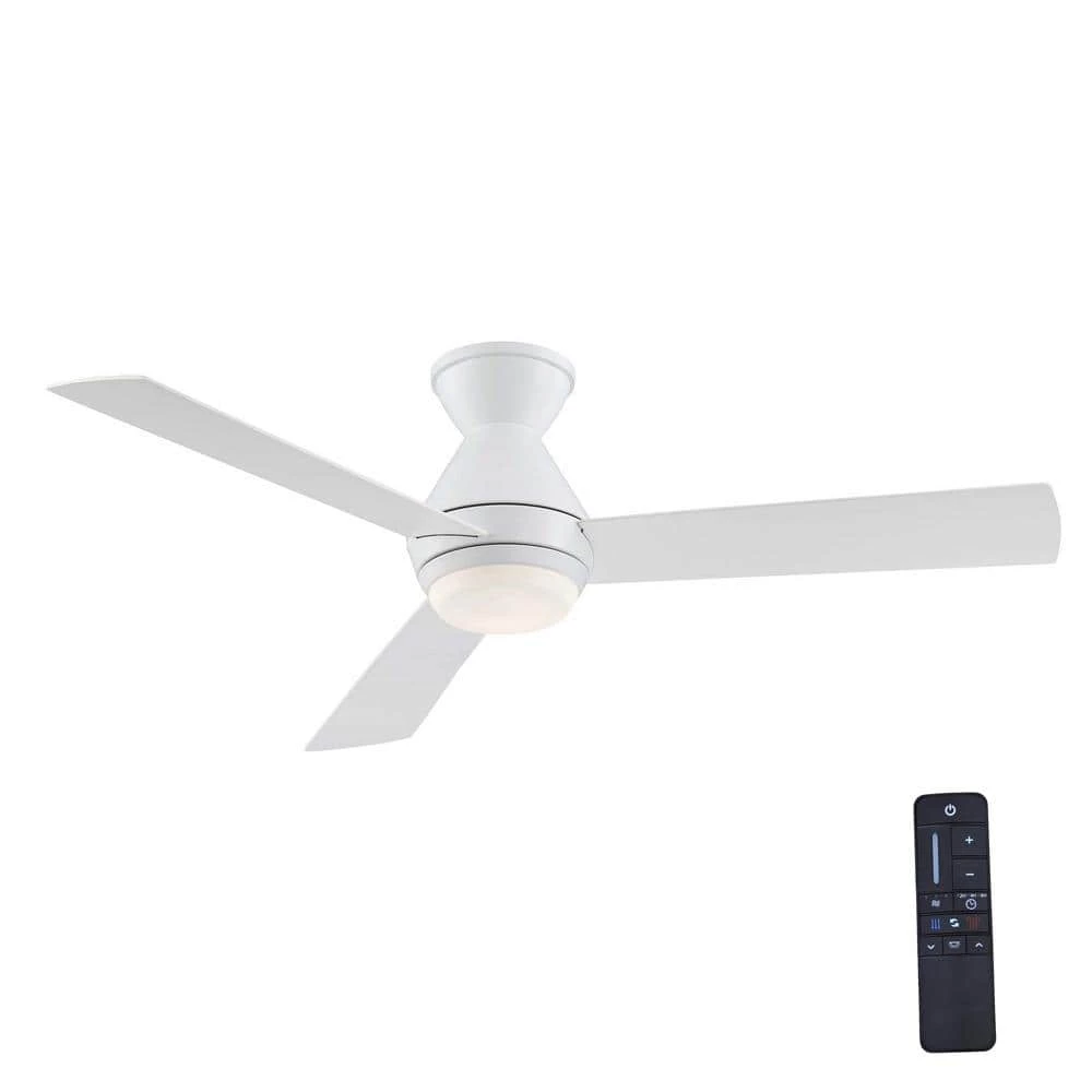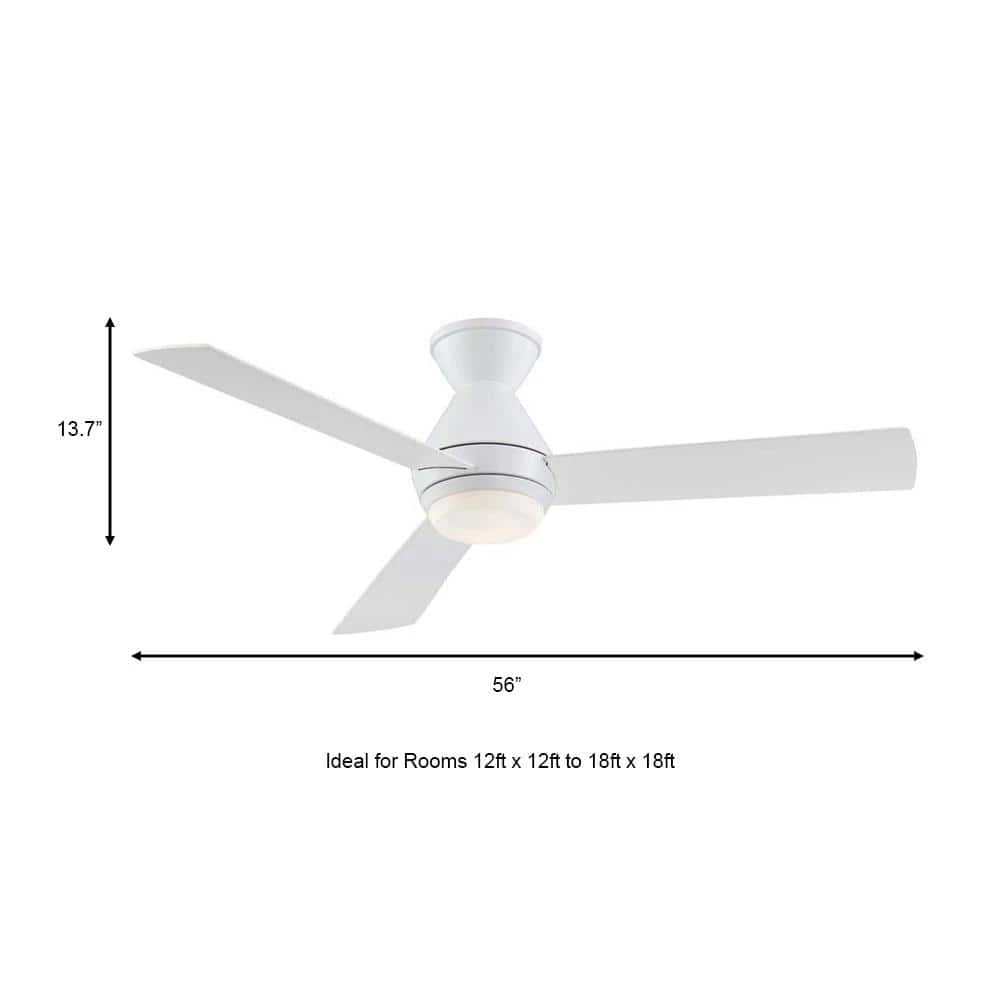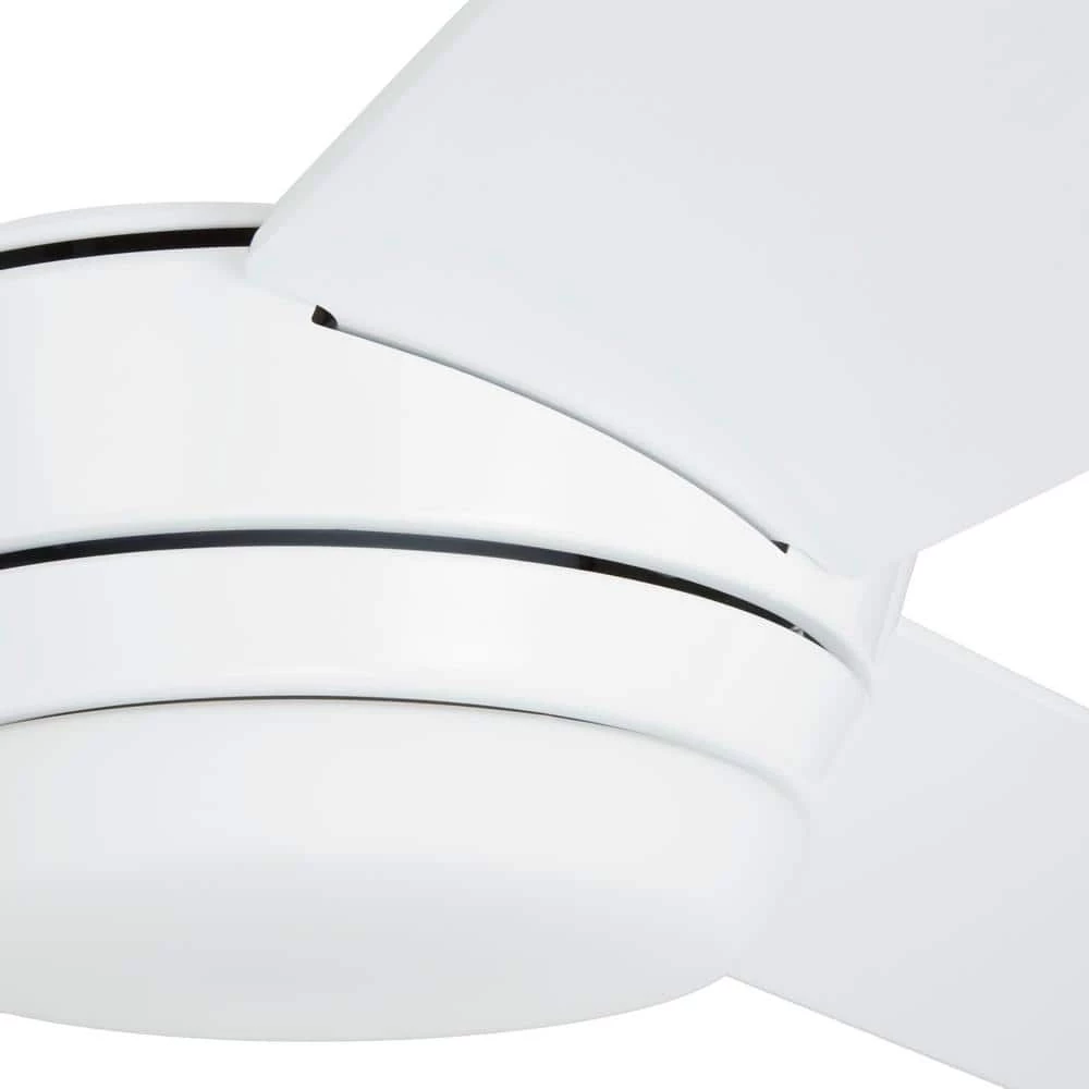 The Home Decorators Collection Emery 56 in. LED Indoor Glossy White Ceiling Fan can be used for great rooms with low ceilings and will offer great air circulation. The included remote control operates the 9-speeds, light dimming, timer, and random breeze functions. The lifetime motor warranty offers peace of mind for reliable air circulation. DC motor fans are 70% more energy efficient than AC motor fans (when comparing efficiency (CFM/W) of DC vs AC motors in published FTC Energy Guides for ceiling fans).