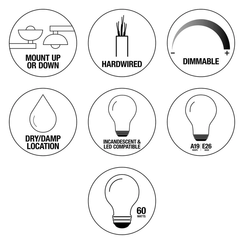 - 60-Watt maximum incandescent or LED, CFL equivalent