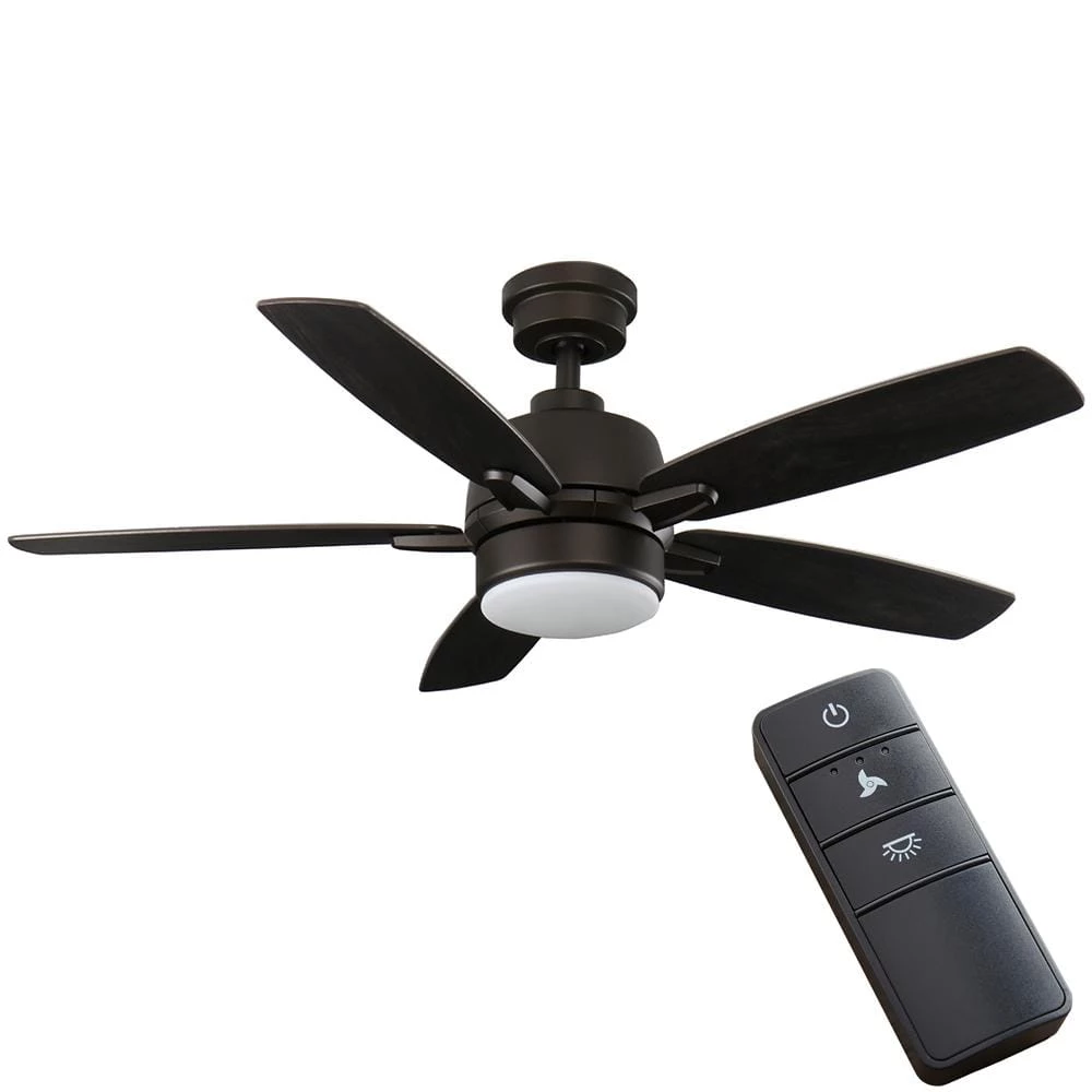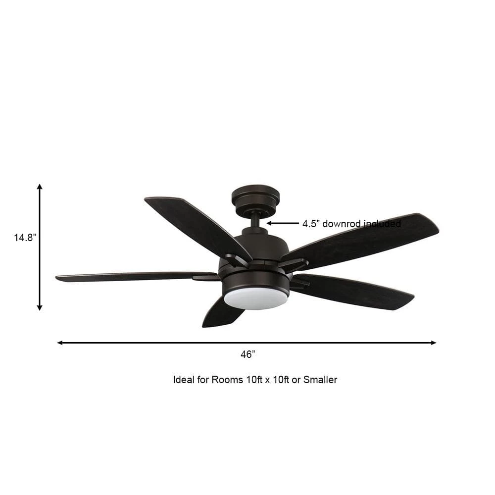 Clean lines and a touch of modern design combine to produce the 46 in. Fawndale ceiling fan from Home Decorators Collection. Designed for use in small rooms up to 100 sq. ft., the Fawndale is sure to enhance your indoor living spaces. This fan features a quiet 3-speed reversible motor and an integrated 20-Watt dimmable light kit with a frosted white glass shade. Installation is a breeze with QuickFit features like the slide-on mounting bracket, twist and lock shade, Accu-Arm blade brackets and a quick connect receiver plug to make wiring easy. Convenient control is at your fingertips with the included remote to operate the fan’s 3 speeds and light functions (on/off/dimming).