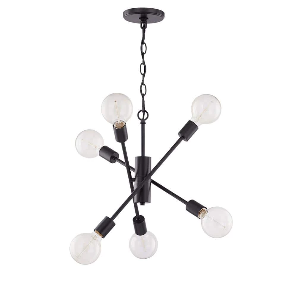 Add mid-century glam to any room with this stunning sputnik-style pendant. The matte black frame is adorned with vintage-style globe-shaped bulbs. This elegant pendant can be used in an entry on a high vaulted ceiling or to beautify your dining area.