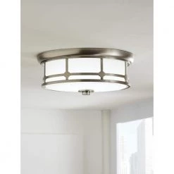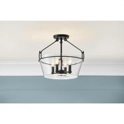 Harpswell 13 in. 2-Light Matte Black Flush Mount with Wood Beads Shade by Home Decorators Collection