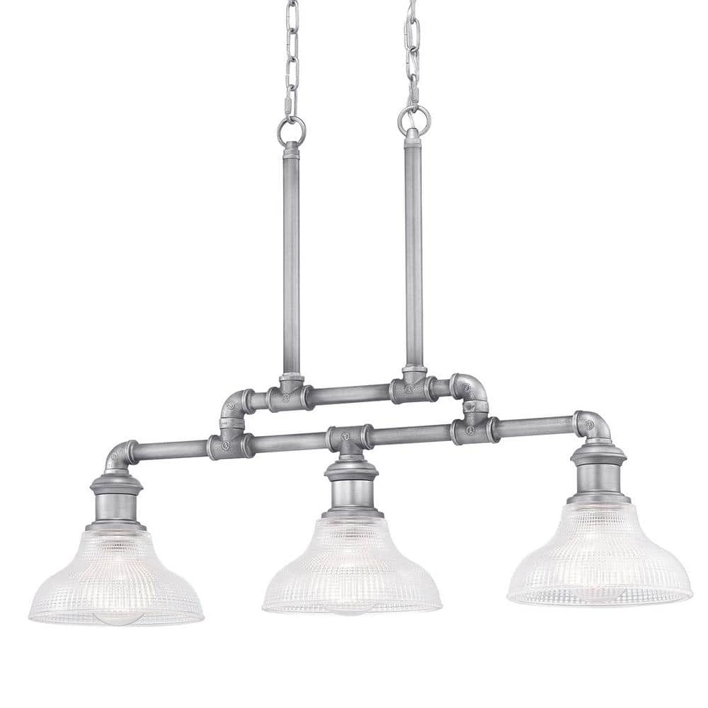 The Foxcroft collection is perfect for a variety of lighting spaces. The 3-light antique nickel island chandelier provides a touch of flair to your favorite space without going overboard. The clear prismatic glass shades bring richly textured detail to its modest design. The Foxcroft island chandelier accommodates four 60-Watt incandescent bulb (not included).