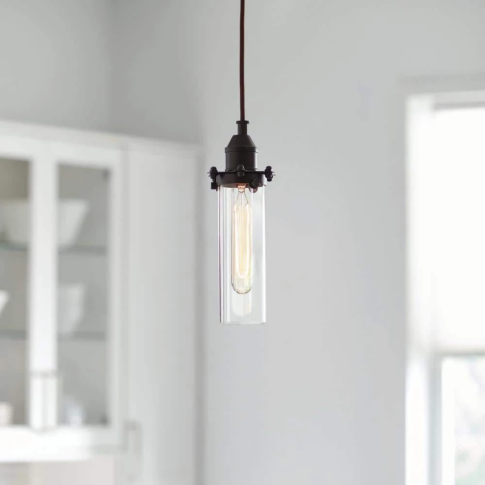 Perfect over a kitchen island or dining table, the Fulton 1-Light Oil-Rubbed Bronze Pendant lends an artful addition to your decor. With a retro-industrial design, these pendants have a tubular shape with a flange top. Accommodates both decorative filament bulbs and LED light bulbs. Includes hardware and instructions.