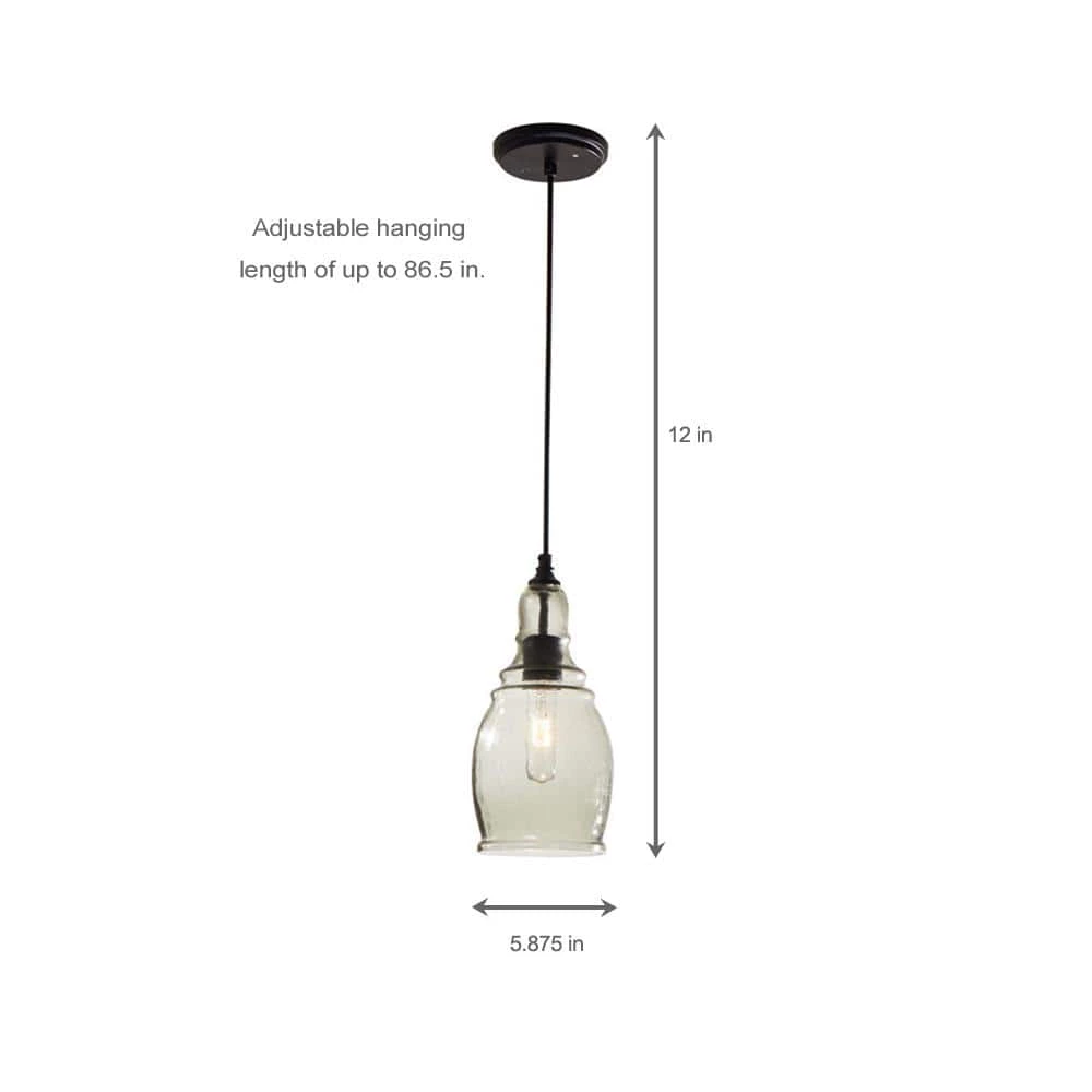 This mini pendant provides abundant light to kitchen Islands, bars and more. Offering unique vintage appeal, the fixture is finished in black that pairs with a clear glass shade for bright illumination. It also features an adjustable hanging length to suit the needs of your space and coordinates beautifully with other pieces.