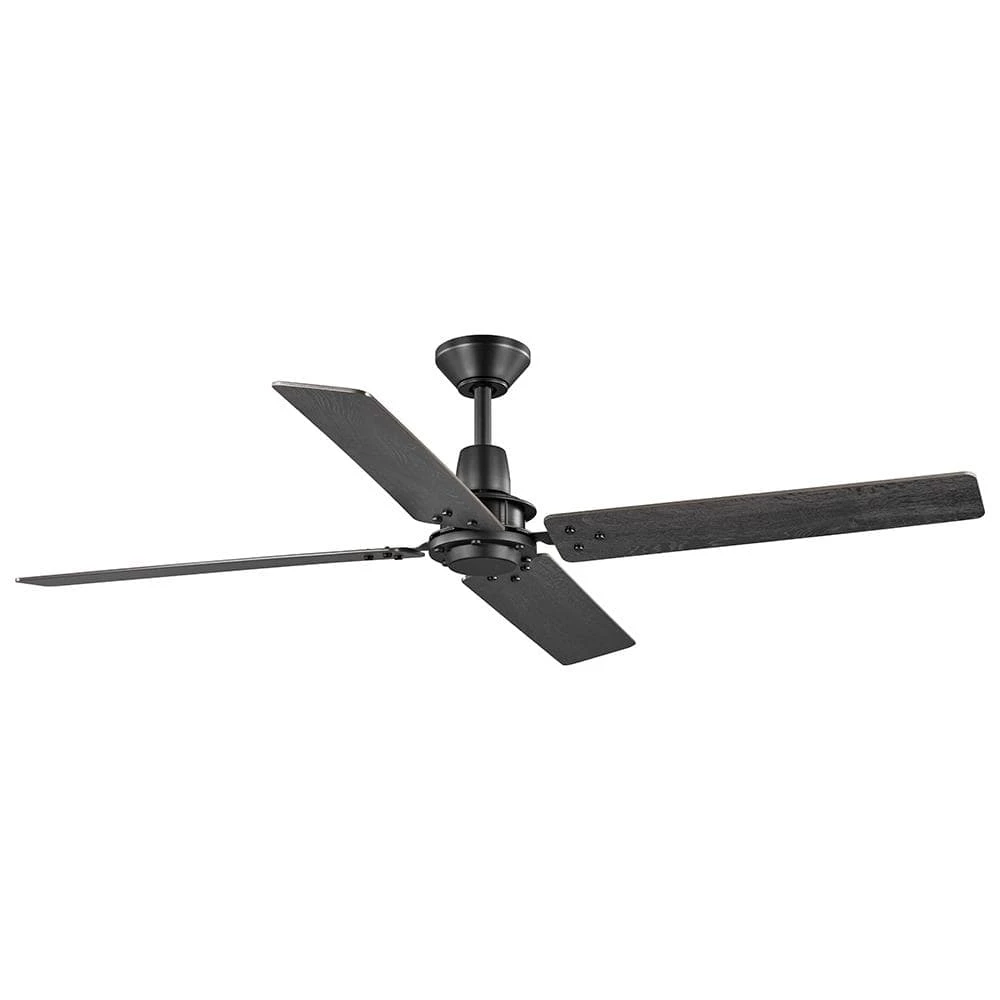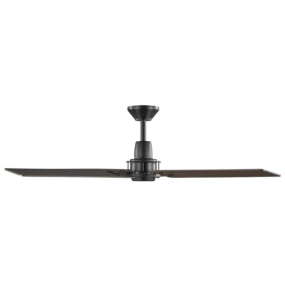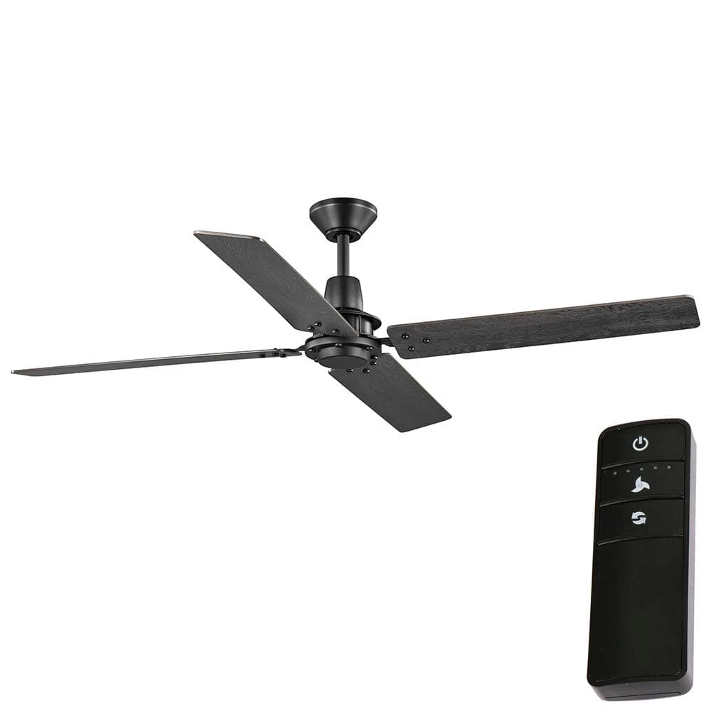 The Home Decorators Collection 60 in. Gatson Ceiling Fan offers powerful and performance in a sleek modern industrial design. The quiet and reversible 5-speed DC motor operates more efficiently than standard AC motor fans providing-year-round comfort and energy savings. The stark matte black finish is paired with 4 reversible blades in cerused charcoal and distressed walnut finishes to enhance your indoor decor. Convenient control is at your fingertips with the included 5 speed remote control and there is a wall cradle included to easily store the remote when it is not in use.