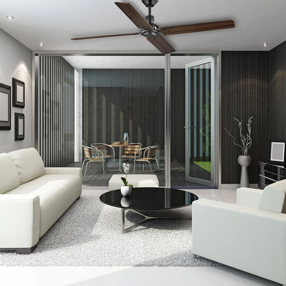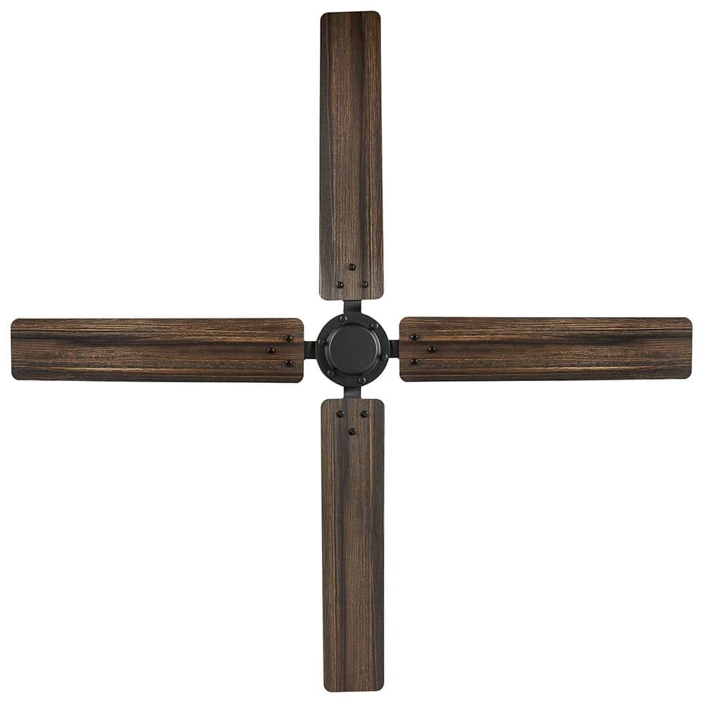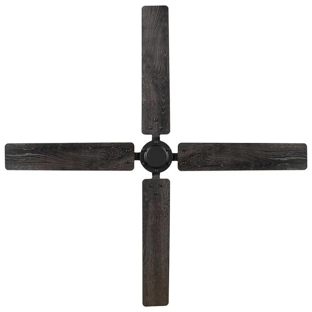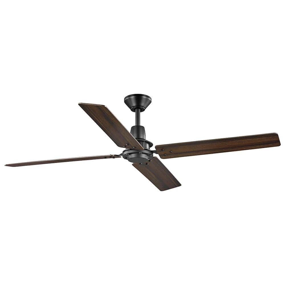 The Home Decorators Collection 60 in. Gatson Ceiling Fan offers powerful and performance in a sleek modern industrial design. The quiet and reversible 5-speed DC motor operates more efficiently than standard AC motor fans providing-year-round comfort and energy savings. The stark matte black finish is paired with 4 reversible blades in cerused charcoal and distressed walnut finishes to enhance your indoor decor. Convenient control is at your fingertips with the included 5 speed remote control and there is a wall cradle included to easily store the remote when it is not in use.