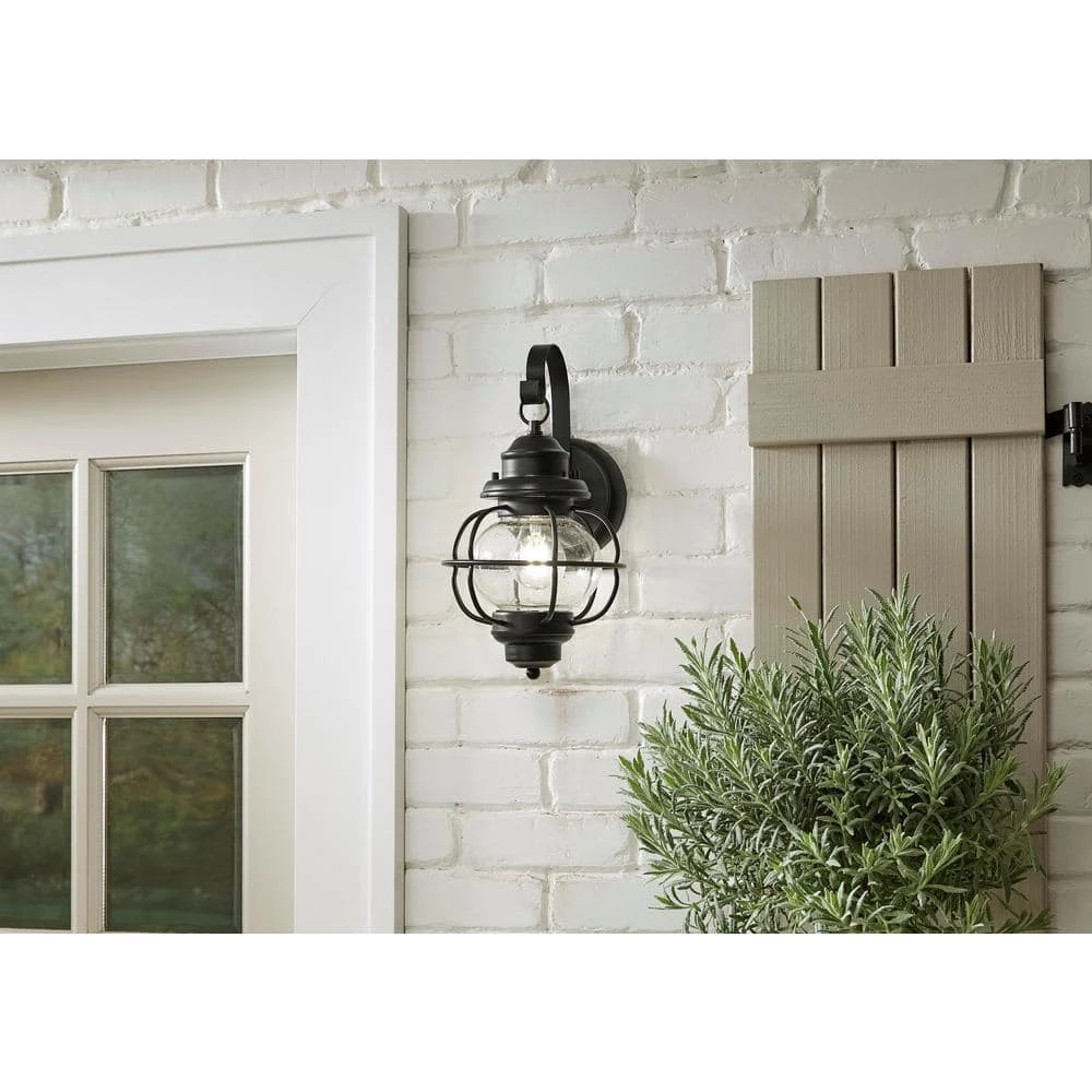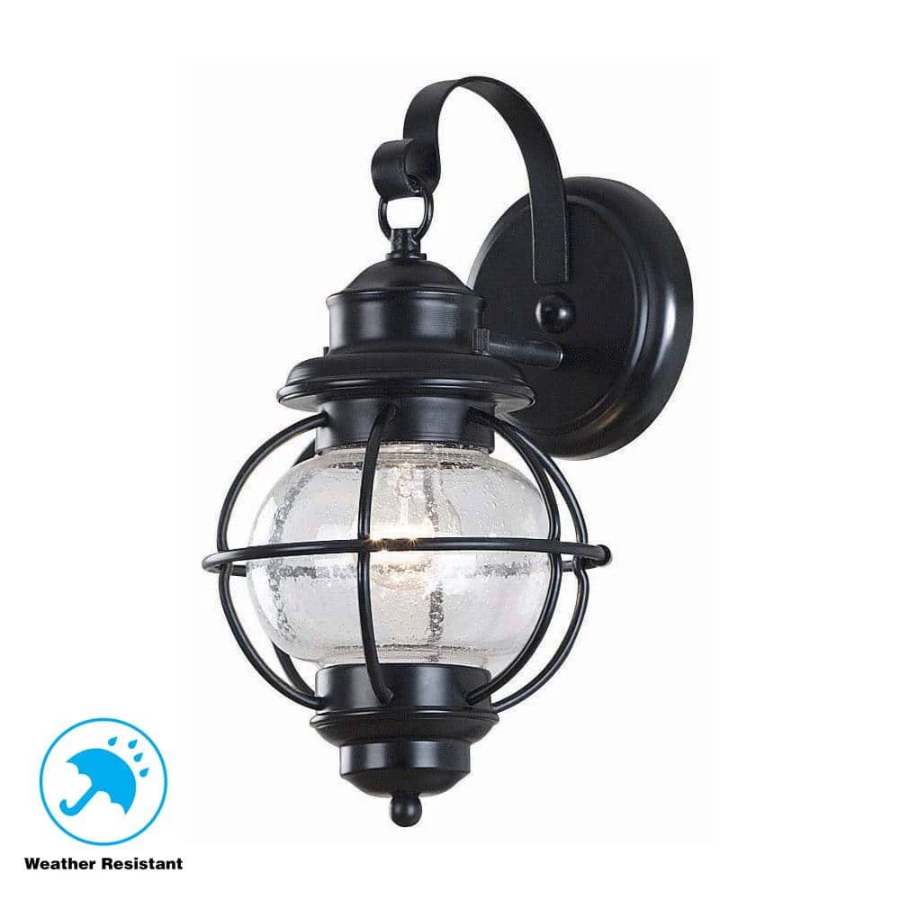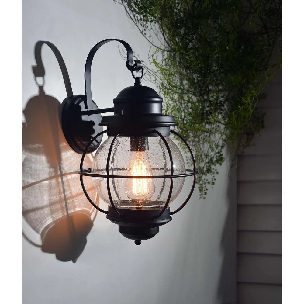 Welcome your guests home with the warm light gently emitting from this coastal wall lantern. Inspired by the vintage lanterns sailors once used, this lantern casts a warm glow on your entry way with its clear seeded glass shade and nautical appearance. Although its design looks as if it was plucked from an old ship, this wall lantern also complements vintage industrial themes when used with an Edison bulb for vintage flair. Install next to your doorway or in your hallway to showcase your antique coastal sense of style.