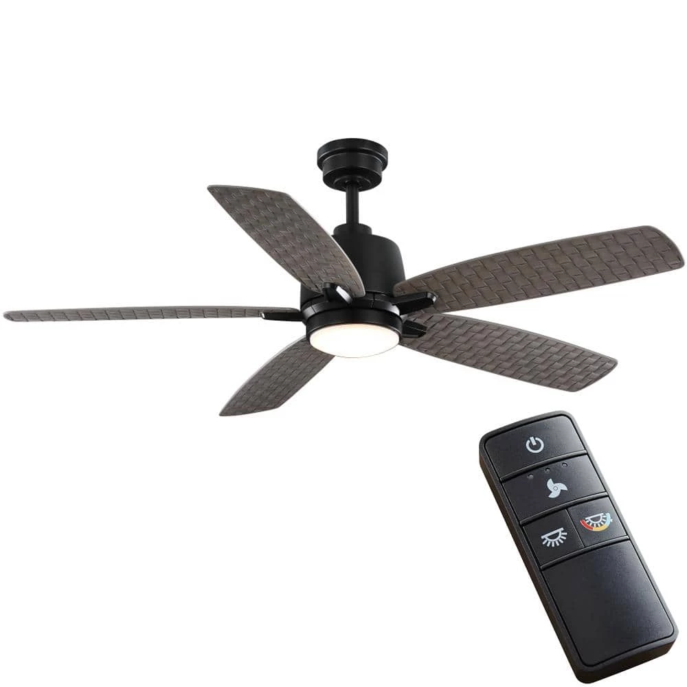 Enhancing your outdoor living space is a breeze with the 56 in. Hayden Lake outdoor ceiling fan by Home Decorators Collection. This wet rated fan is design to stand up to the outdoor environments, but looks great indoors as well. The Hayden Lake fan includes an integrated 20-Watt LED light module that is dimmable and allows you to select between 3 different light temperature options – warm white (2700K), soft white (3000K), or day light (5000K). A convenient hand held remote is included to place control at your finger tips to operate the fans three speeds as well as the light settings. The powerful and quiet motor has three speeds and is reversible for year-round comfort and savings.