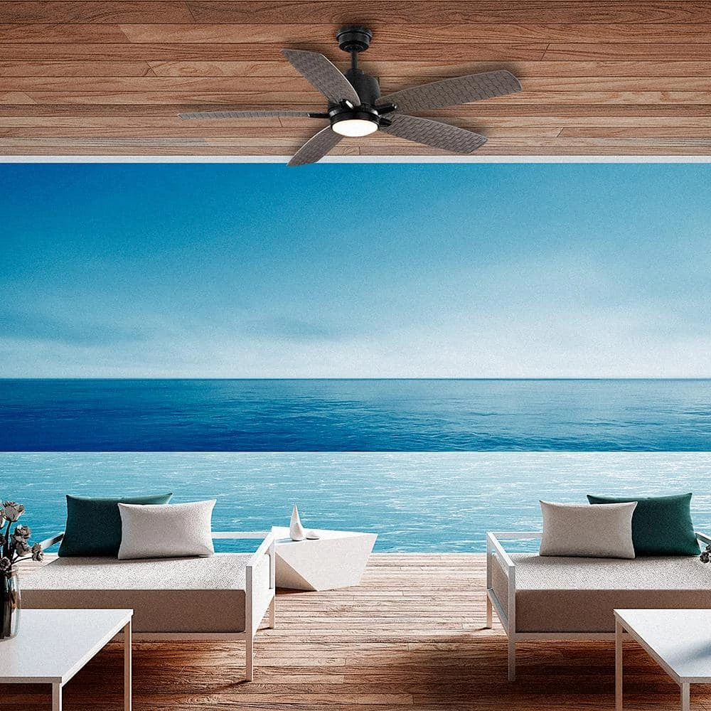- Wicker weave pattern ABS blades in gray wash finish