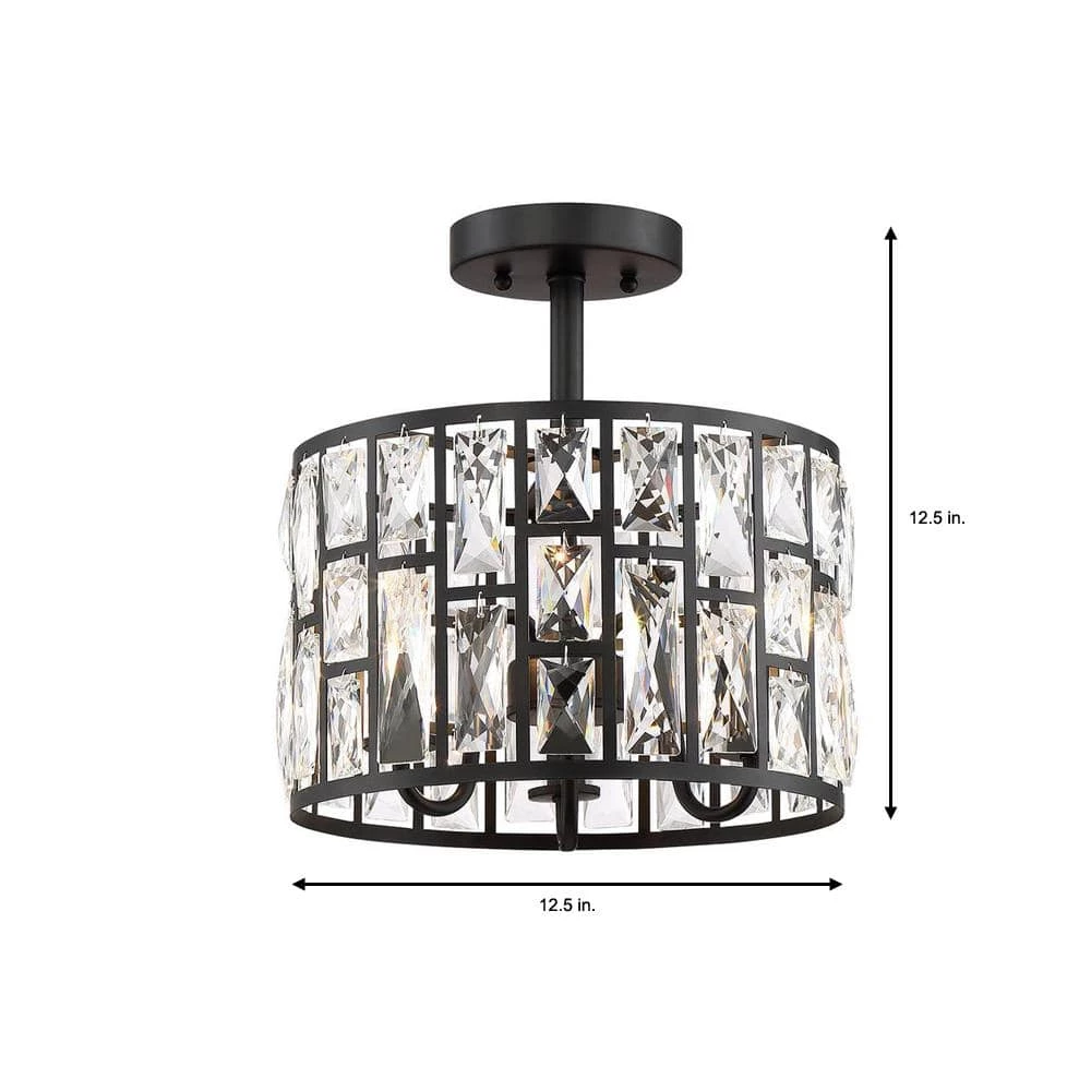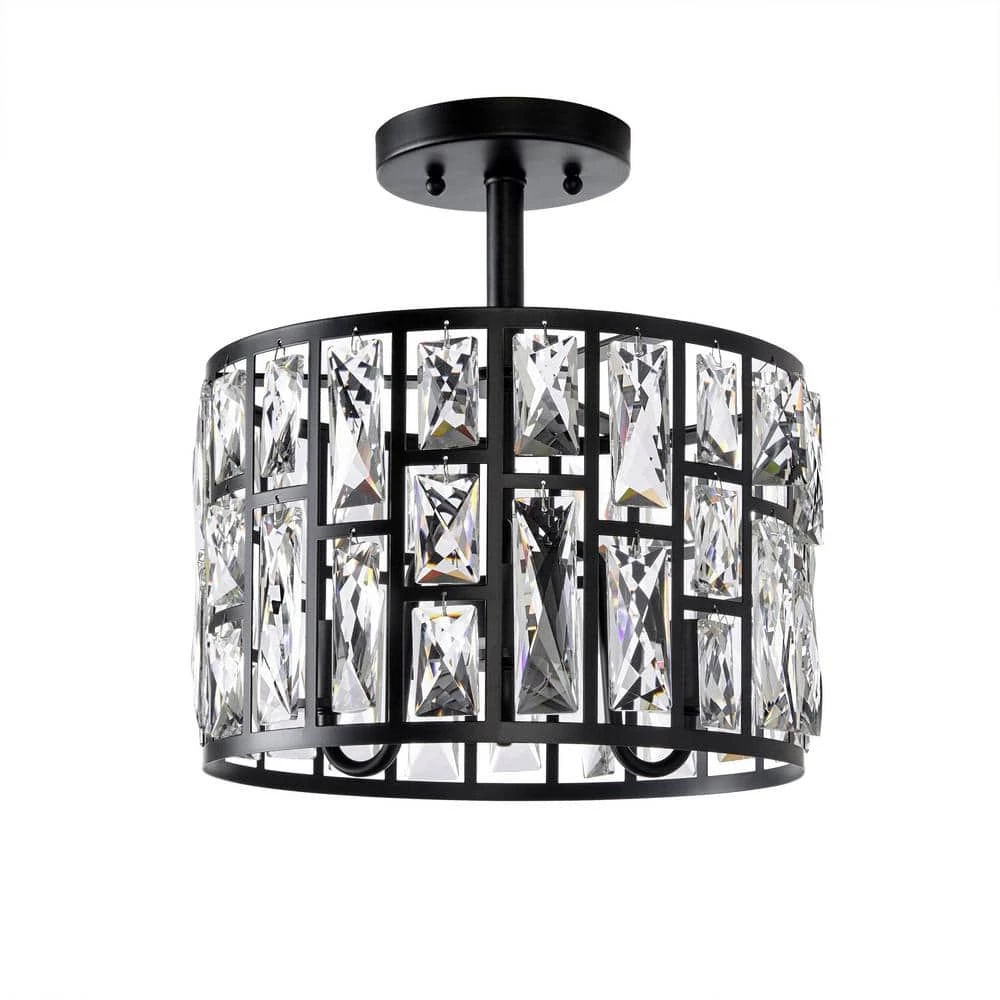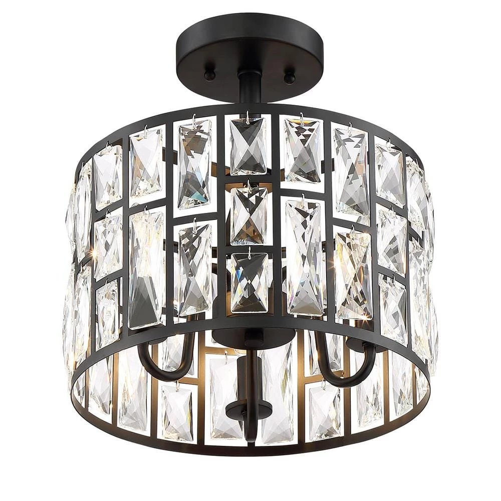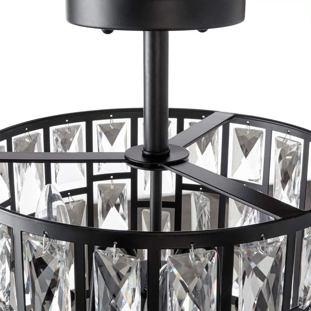 Adorned with multiple rectangular hand-crafted crystals inserted into specially-designed laser-cut frames, the Kristella 3-Light Semi-Flush mount light is the perfect, elegant addition to your home or office. Featuring a sleek black finish, it uses warm, incandescent lighting for a subtle glow. Hardware is included for easy installation.