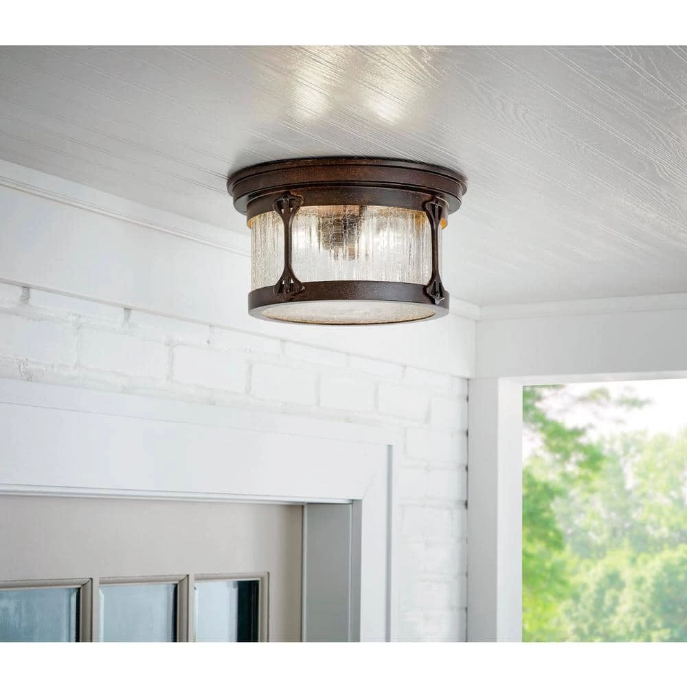 This Home Decorators 2-Light Chestnut Outdoor Flushmount Light offers a durable housing with stylish clear water glass in a timeless design. Outdoor wall lanterns help to light your walkways and entryways, making it perfect for areas such as doorways, porches, garages or car ports. The recommended bulb for this fixture is one 60-Watt equivalent LED/CFL/Incandescent bulb. It’s easy to install with step-by-step instructions included.