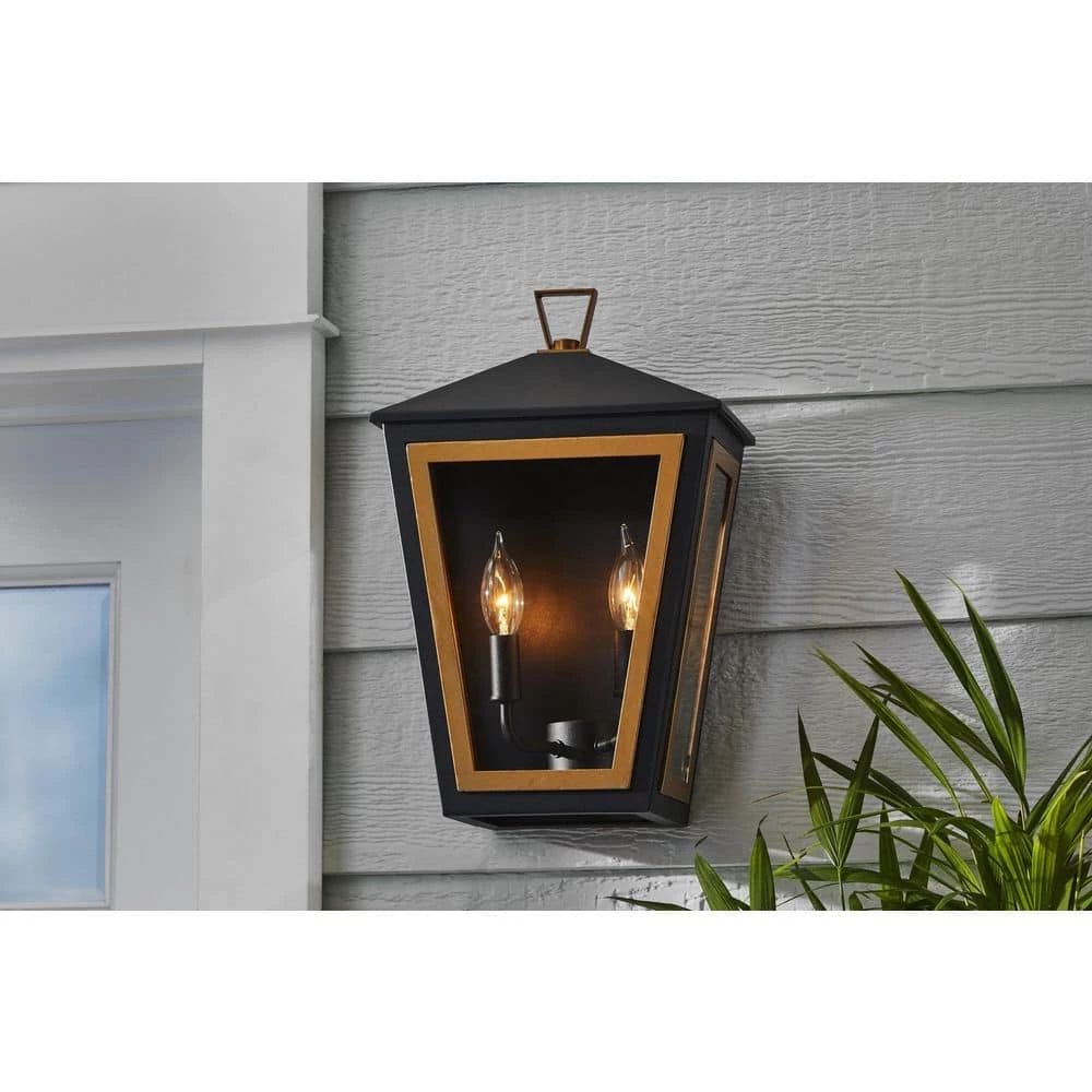 Traditional looks of a lantern with a modern finish – this carriage light garage wall sconce has all the look of an old school gas light lantern. A smooth matte black and antique brass finish gives it an upscale modern look. This hardwired fixture is easy to install with instructions, electrical wire, and mounting hardware included.