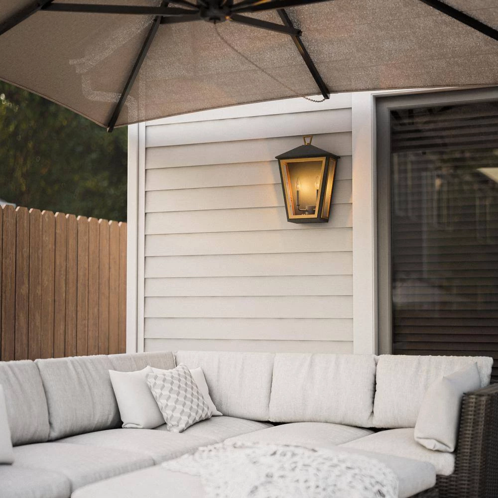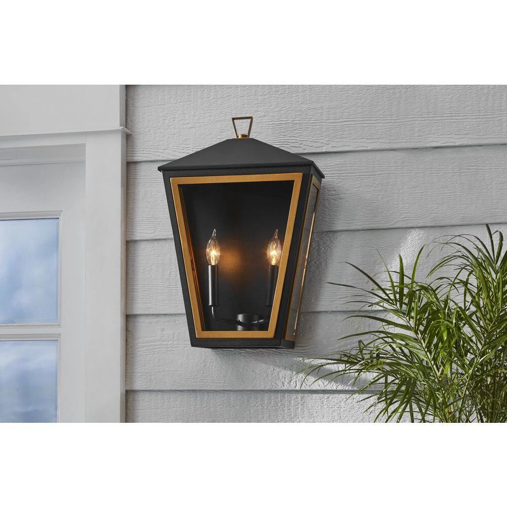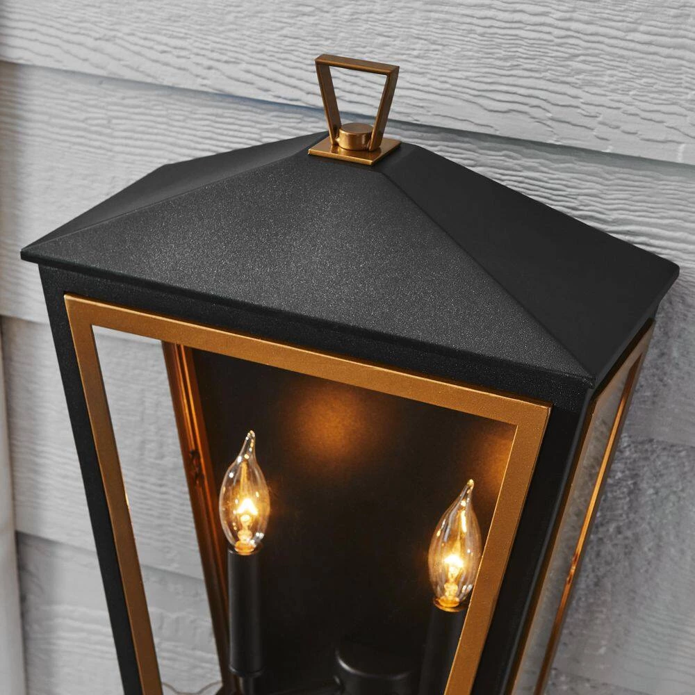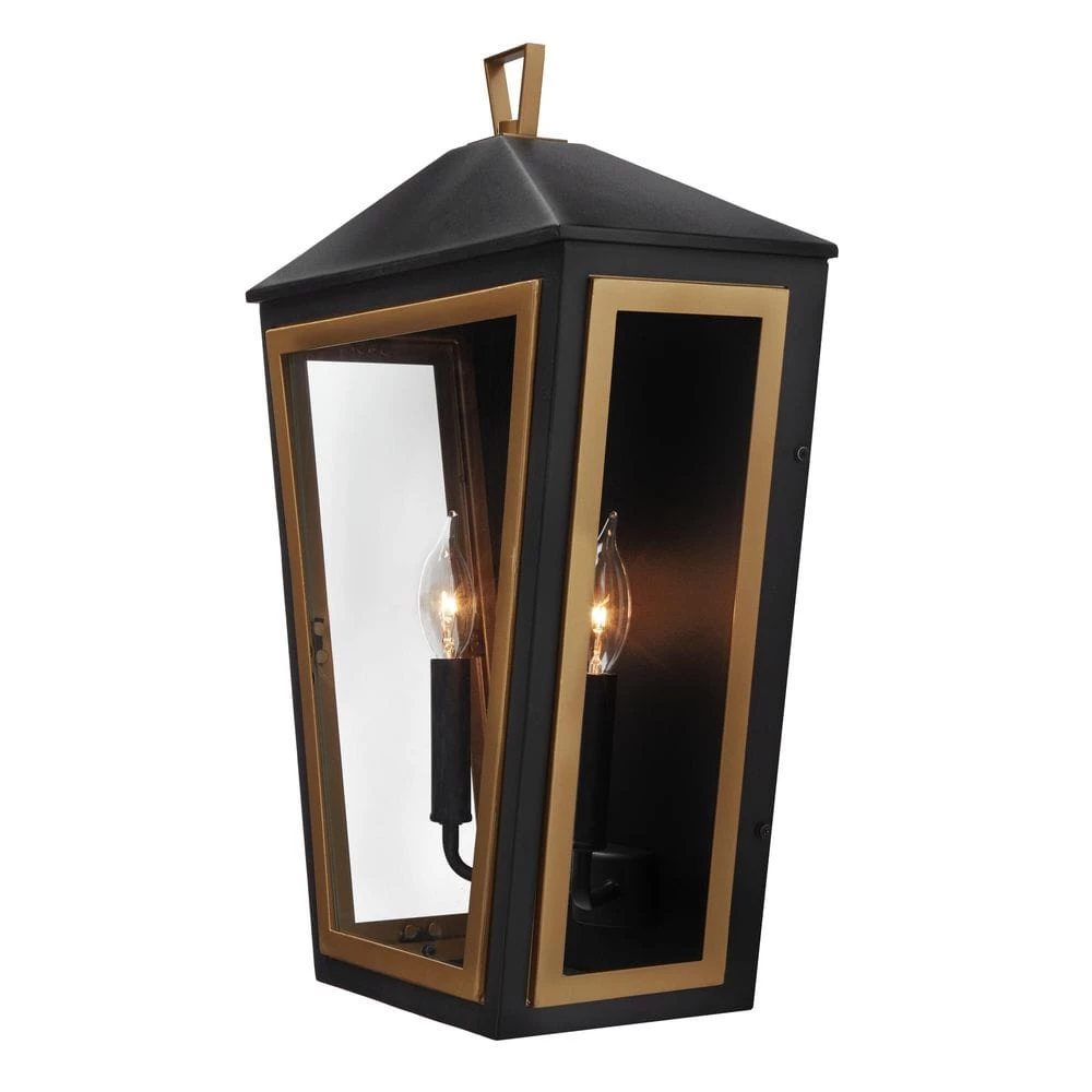 Traditional looks of a lantern with a modern finish – this carriage light garage wall sconce has all the look of an old school gas light lantern. A smooth matte black and antique brass finish gives it an upscale modern look. This hardwired fixture is easy to install with instructions, electrical wire, and mounting hardware included.