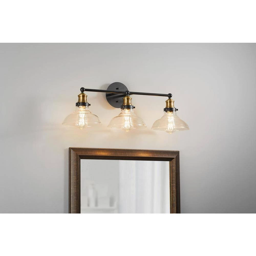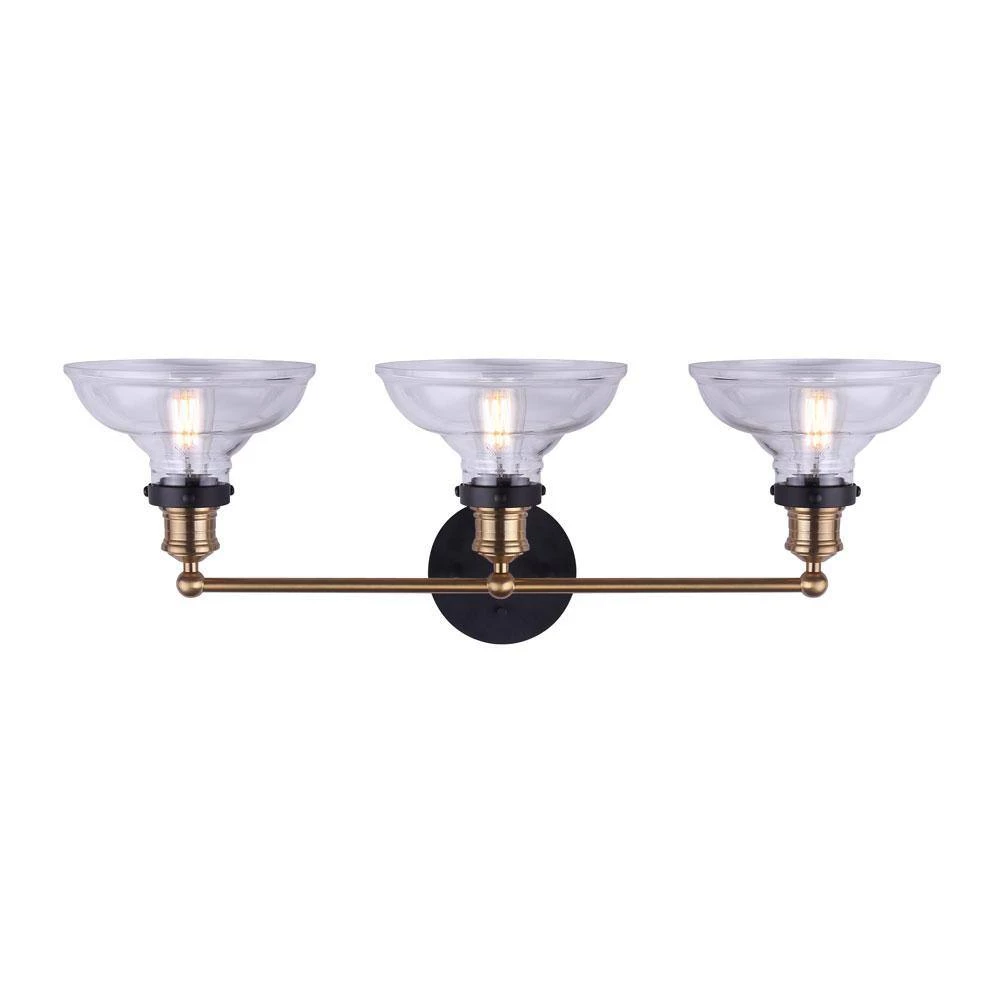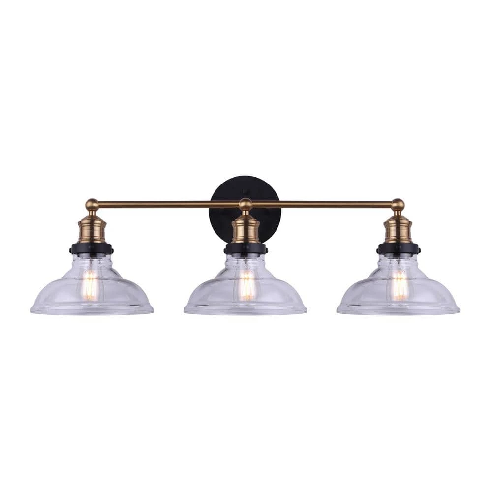 Add a modern touch to your home with this Lora 3-Light Matte Black and Gold Vanity Light with Clear Glass Shades. It features a gold and matte black finish. Easily install this in your powder room or bathroom. It features a metal bar and clear glass shades.