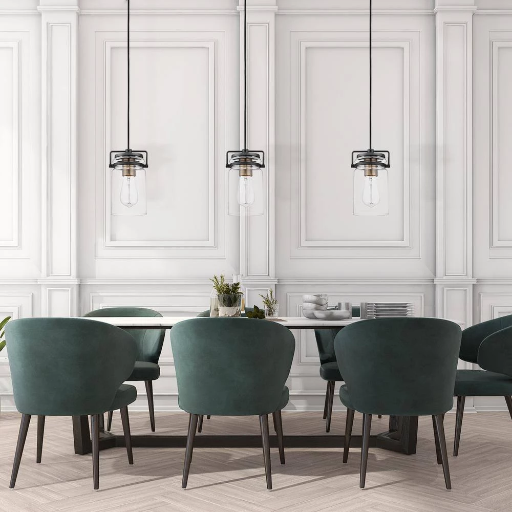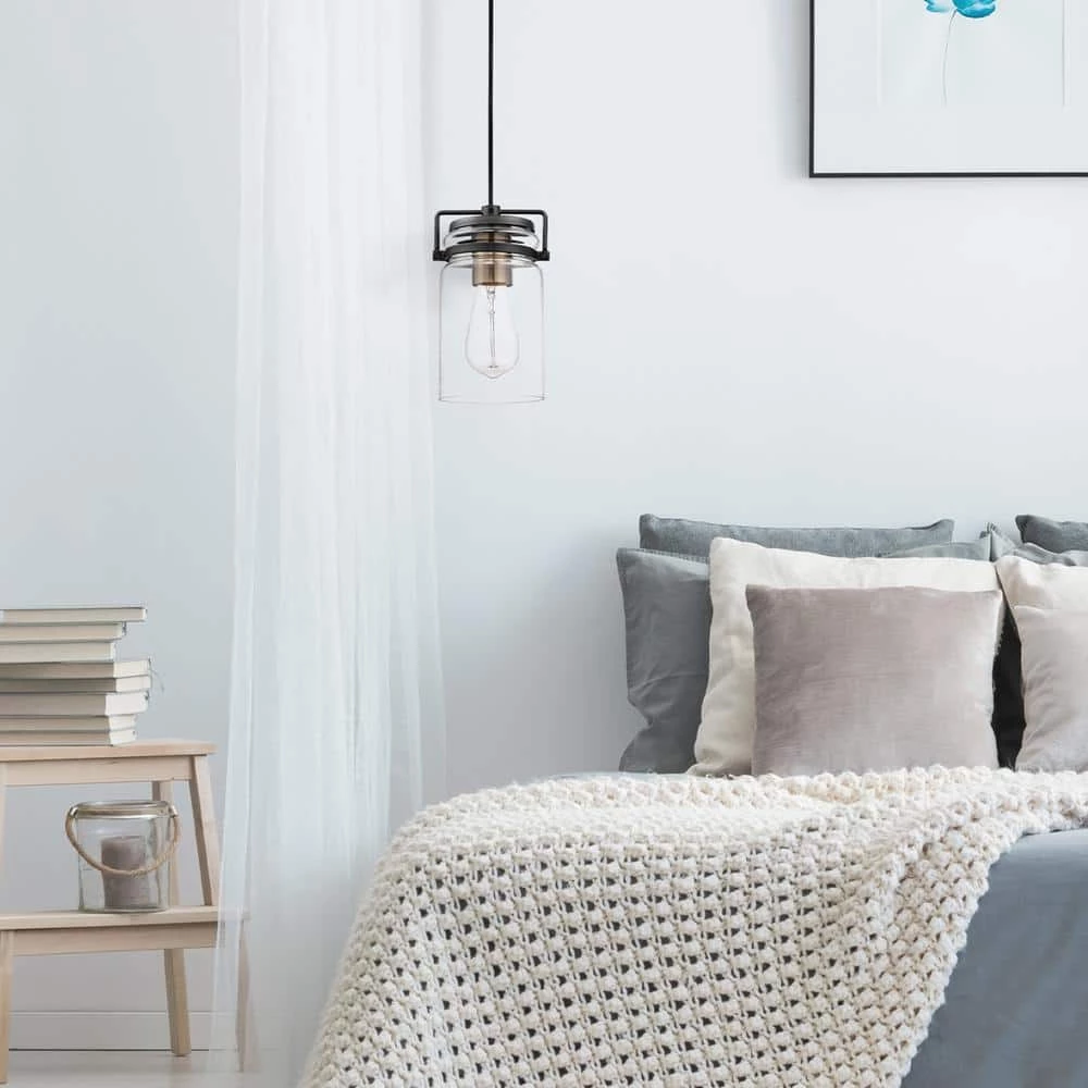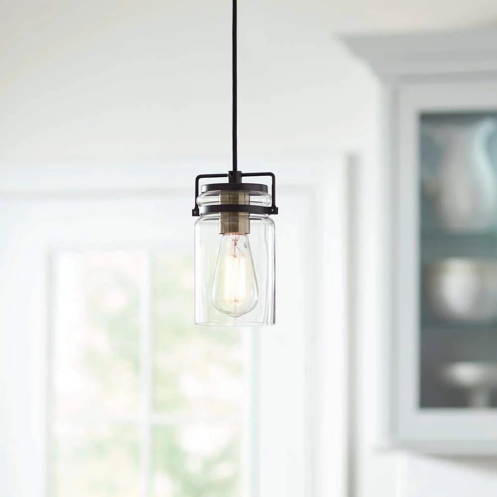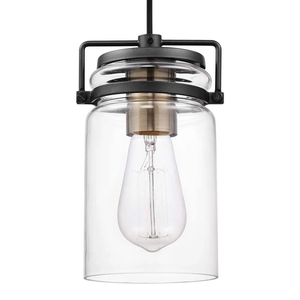 - VINTAGE INSPIRED: an antique brass socket sits inside a clear glass shade and is complemented by dark bronze rings to create a vintage inspired pendant perfect for any room in your home