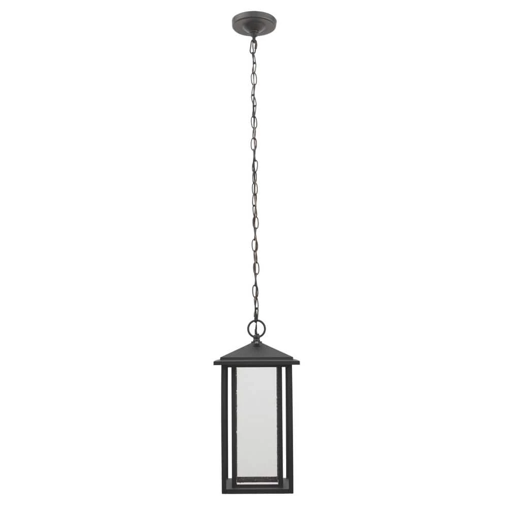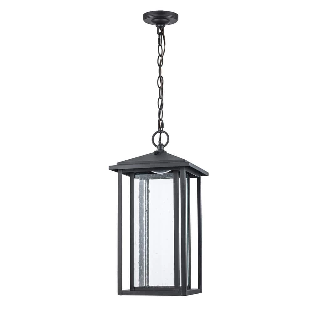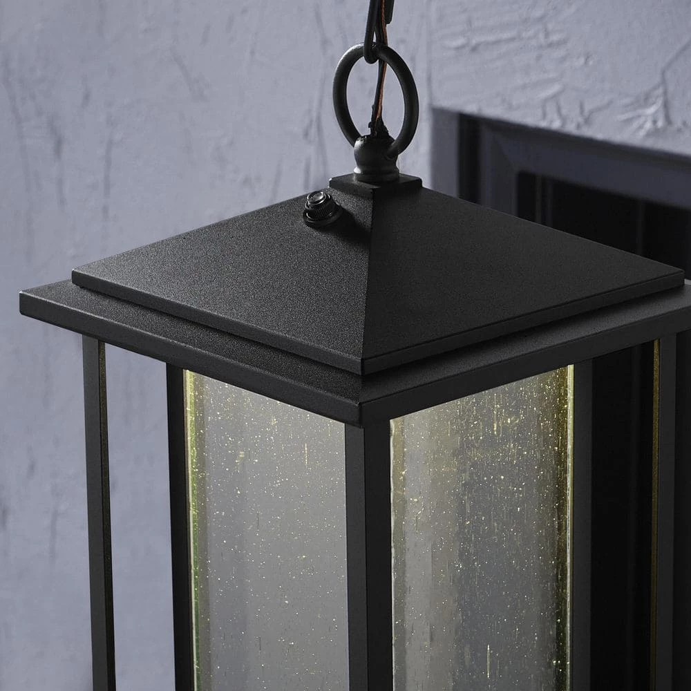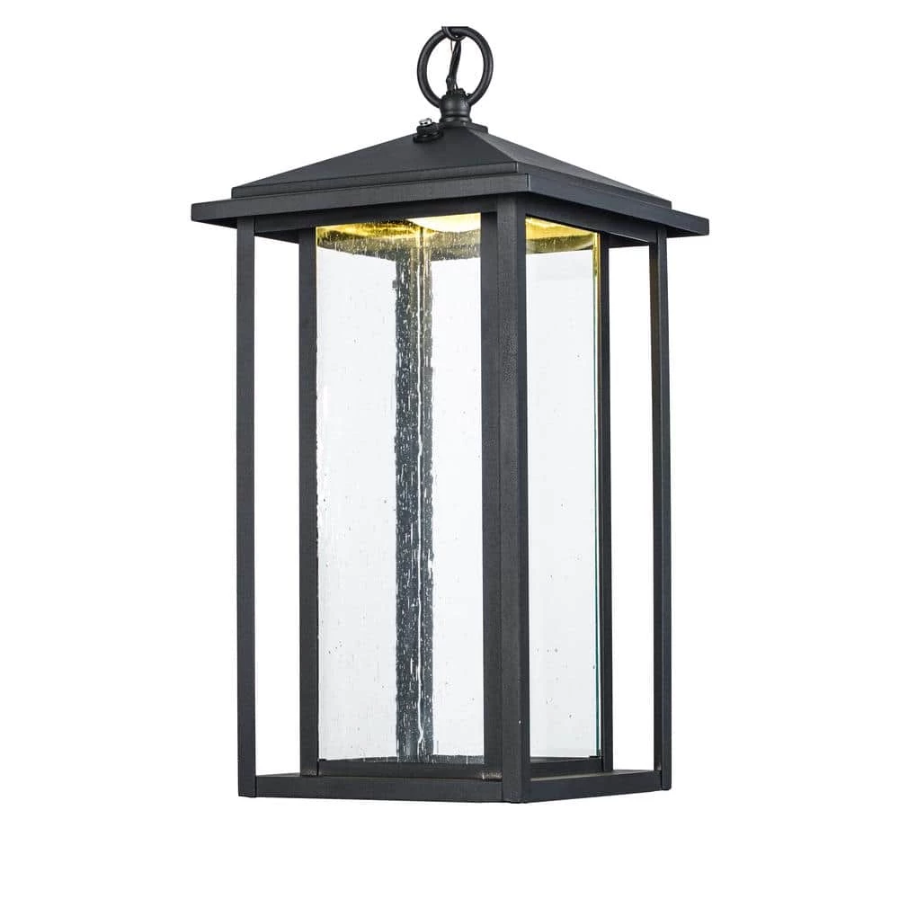 The Mauvo Canyon Collection features modern style outdoor lighting with clean, simple lines and decorative craftsman accents. The Mauvo Canyon large outdoor pendant is finished in black to compliment a variety of exterior home styles from traditional to contemporary. The low maintenance integrated LED module emits 1206 Lumens of warm white light and will never require a bulb change. Also included in this fixture is a dusk to dawn photocell sensor that will automatically turn the light on at night and off during the day. It is important to position this fixture so that light from any other light source does not shine directly onto the photocell eye as this will interfere with the normal operation of the photocell sensor, this means Mauvo Canyon dusk to dawn outdoor lights should not be placed next to each other. The Mauvo pendant hangs from a matching black chain which offers an adjustable height and sloped ceiling compatibility for porches, patios and other covered outdoor spaces.
