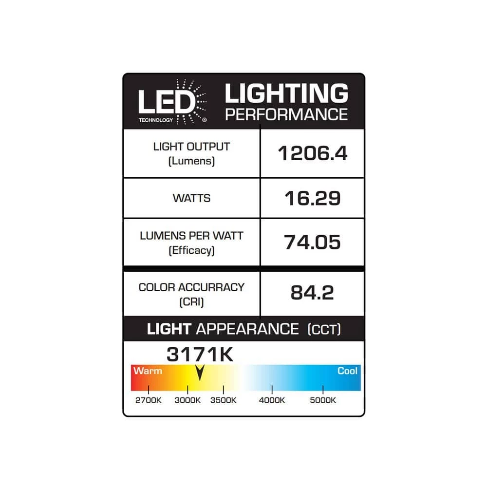 - Uses 16.3-Watt of power to emit 1206 Lumens of warm white light