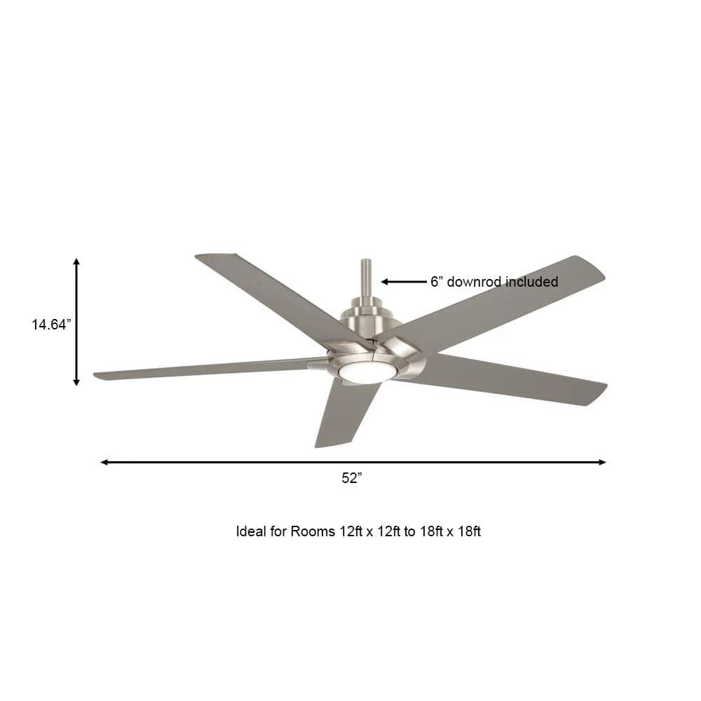 Give a fresh look to your contemporary decor with the 52 in. Mickelson LED Brushed Nickel Ceiling Fan. Ideal for large spaces, this fan features 5 blades for air movement efficiency, with quiet, wobble-free operation. The full function hand held remote control offers independent light and speed controls.
