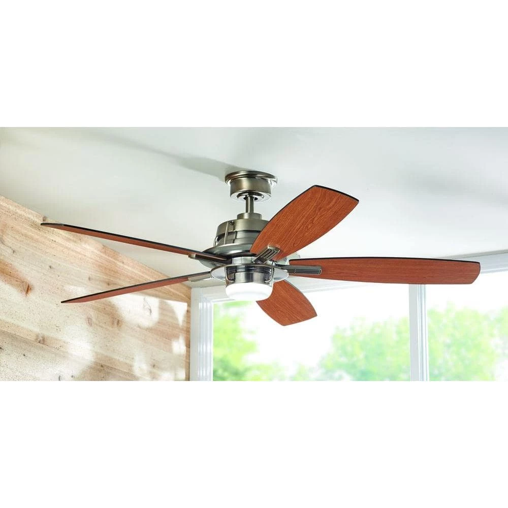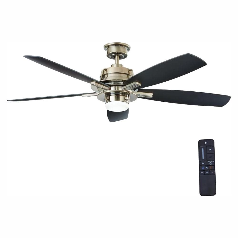The Home Decorators Collection Montpelier 56 in. LED Gunmetal Ceiling Fan has a mix between craftsman and modern design with its piping around the housing and light kit. The newly designed remote control has many features such as 9 speeds, light timer, comfort breeze, light dimmer and fan reverse function. DC motor fans are 70% more energy efficient than AC motor fans (when comparing efficiency (CFM/W) of DC vs AC motors in published FTC Energy Guides for ceiling fans).