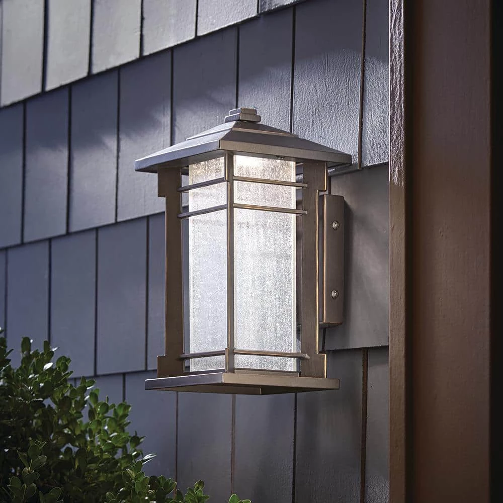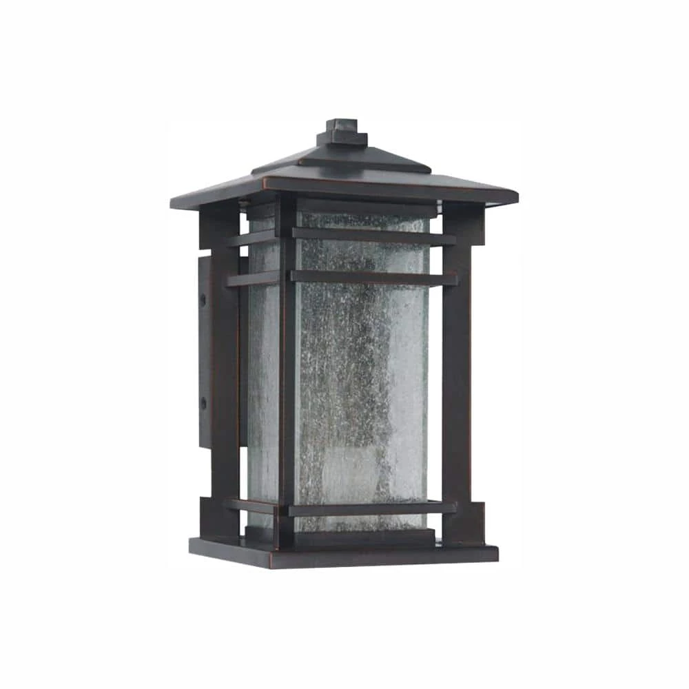 This rubbed oil bronze outdoor wall light from Home Decorators Collection combines a craftsman style design and an LED integrated light source for a classic look with energy saving technology. The Integrated LED technology is low maintenance as you will never need to replace the bulbs for the life of the fixture. This transitional piece includes seeded glass sides that allow for the maximum amount of light to illuminate outdoor areas, and a dark bronze finish that will coordinate with a variety of home types and outdoor decor styles. The bottom of the fixture remains open to provide directional lighting over porches and exterior walkways. This fixture comes ready to install and enjoy for years to come. Look for the coordinating post mount light and pendant to complete your home renovation.