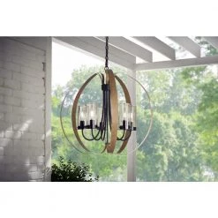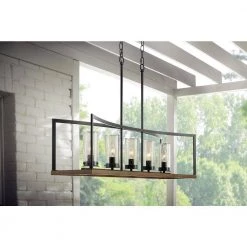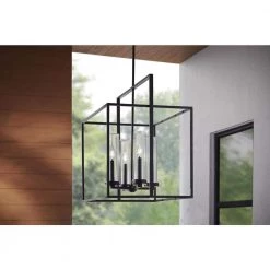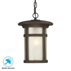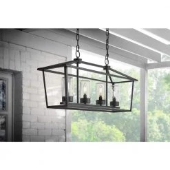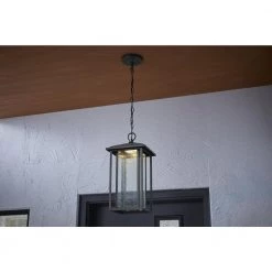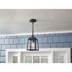 Blakeley Transitional 2-Light Black Outdoor Pendant with Beveled Glass by Home Decorators Collection