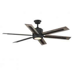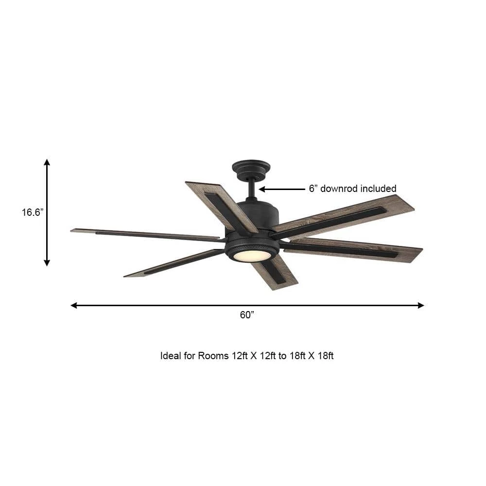 The 60 in. Palermo Grove ceiling fan features a 20-Watt LED module (CCT tunable ) with a Gilded Iron finish, Driftwood/Distressed Oak reversable blades and an etched glass shade. With a sophisticated and modern design, Palermo Grove has a dual mount system and comes with a full function remote control. Batteries are included. DC motor fans are 70% more energy efficient than AC motor fans (when comparing efficiency (CFM/W) of DC vs AC motors in published FTC Energy Guides for ceiling fans).