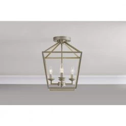 Weyburn 16.5 in. 4-Light Antique Silver Leaf Lantern Farmhouse Semi-Flush Mount Ceiling Light Fixture by Home Decorators Collection
