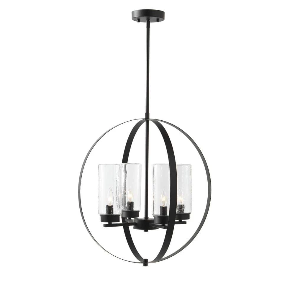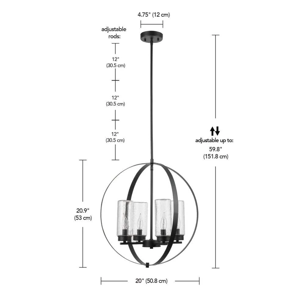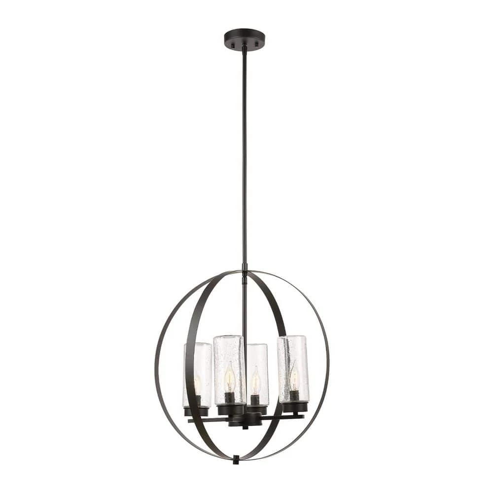 A complete marriage between traditional and contemporary design, the Home Decorators Collection 4-Light Chandelier has it all – impeccable style with an open chandelier construction. Easy to incorporate into your existing decor, the dark bronze finish and upscaled traditional design offers a stunning way to light your room. The clear seeded glass shades lets you choose between a variety of bulbs to customize the chandelier and emphasize your own personal style. Let your inner interior designer shine!