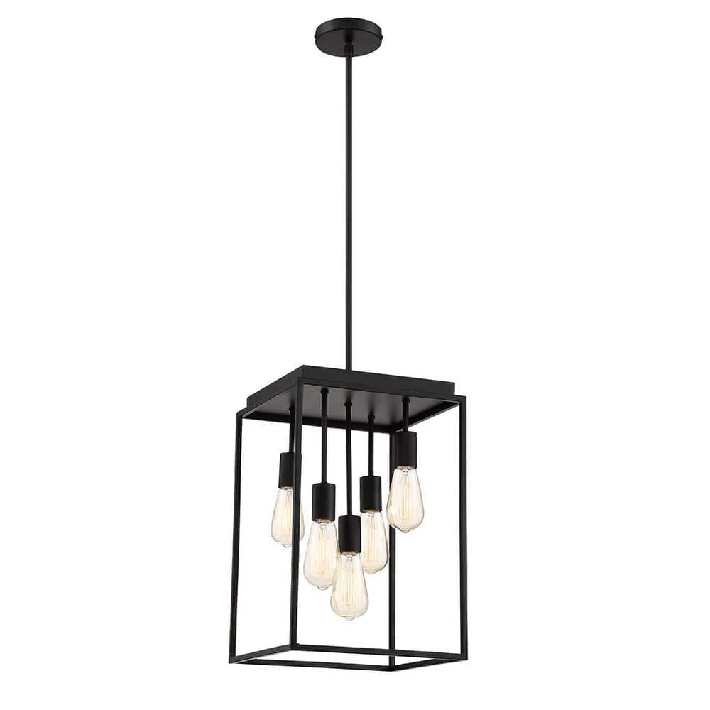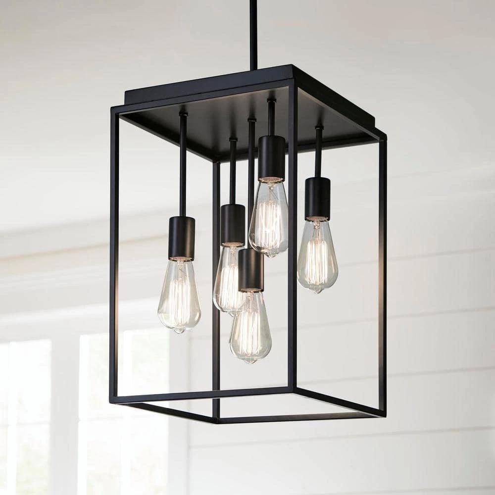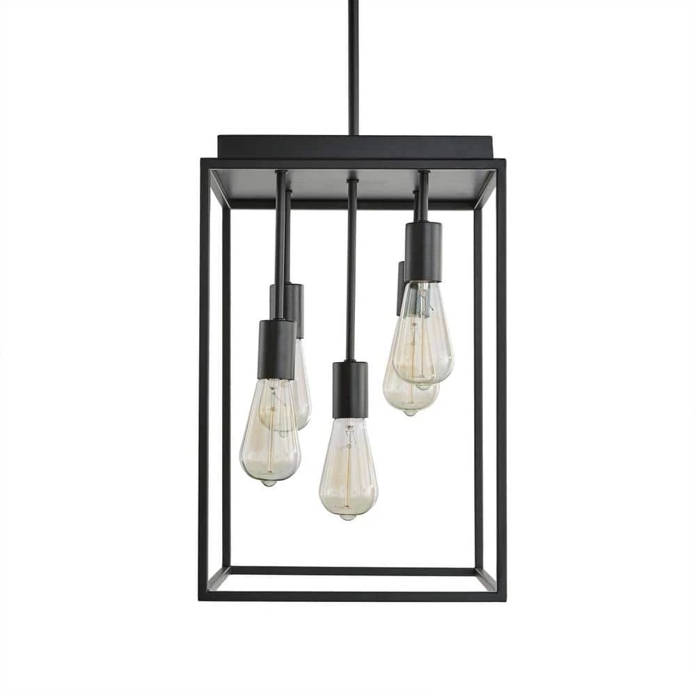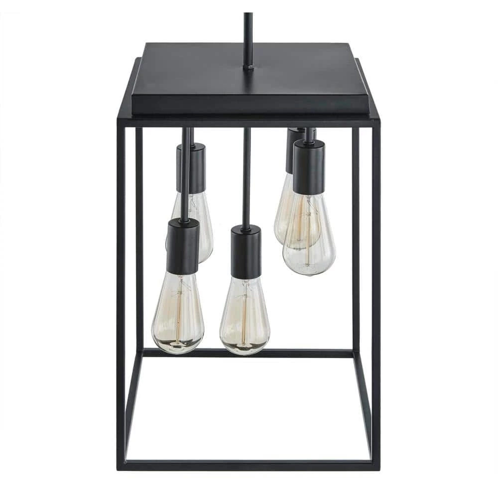 Bring an industrial touch to your home decor with the Rollins 5-Light Chandelier. Boasting an adjustable length to suit your space, this fixture features filament bulbs dangling inside a black square cage. This pendant is the perfect addition to your living room or over your dining room table for a bold statement piece. Includes hardware for convenient installation.