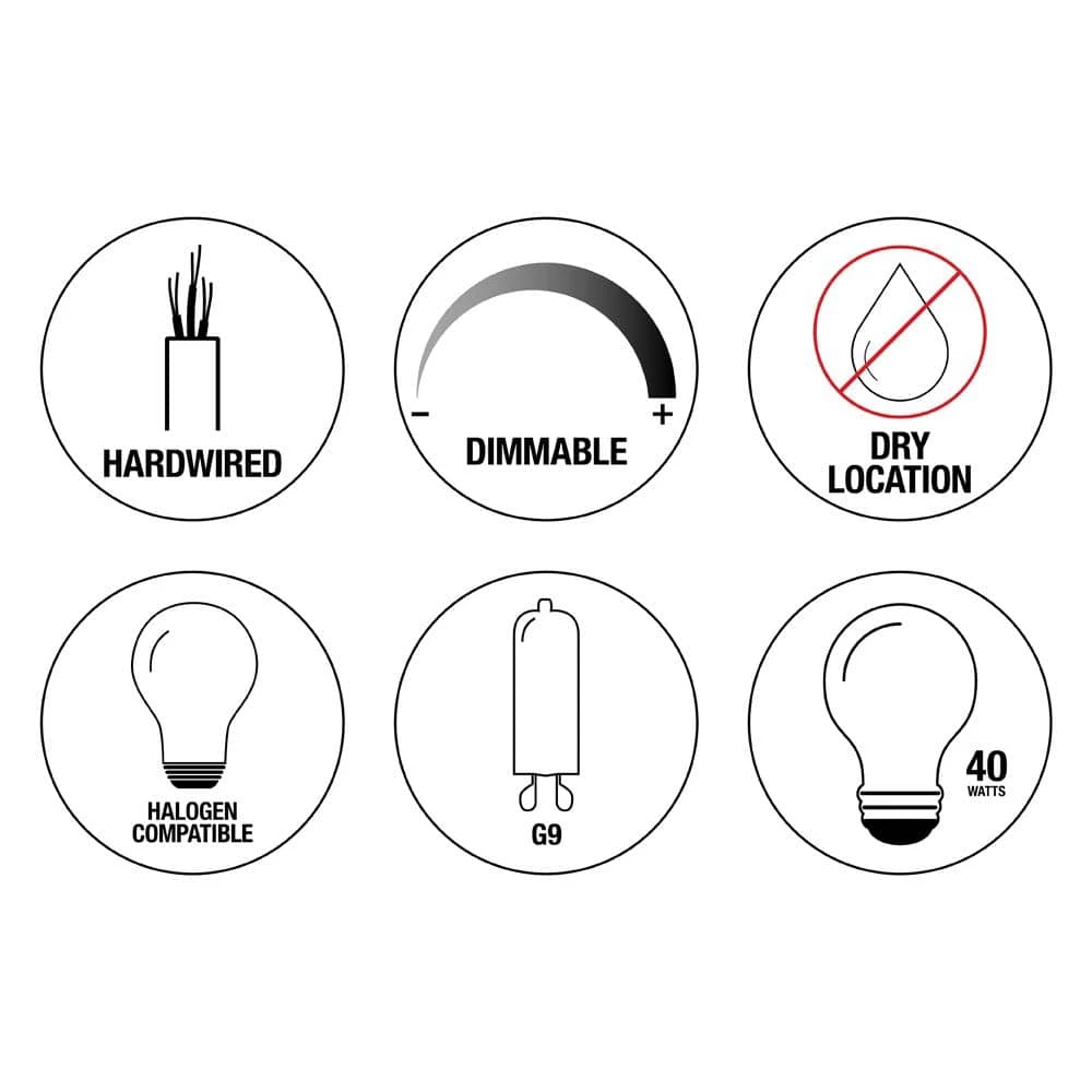 - Uses (3) 40-watt bi-pin G9 Halogen bulbs (included)