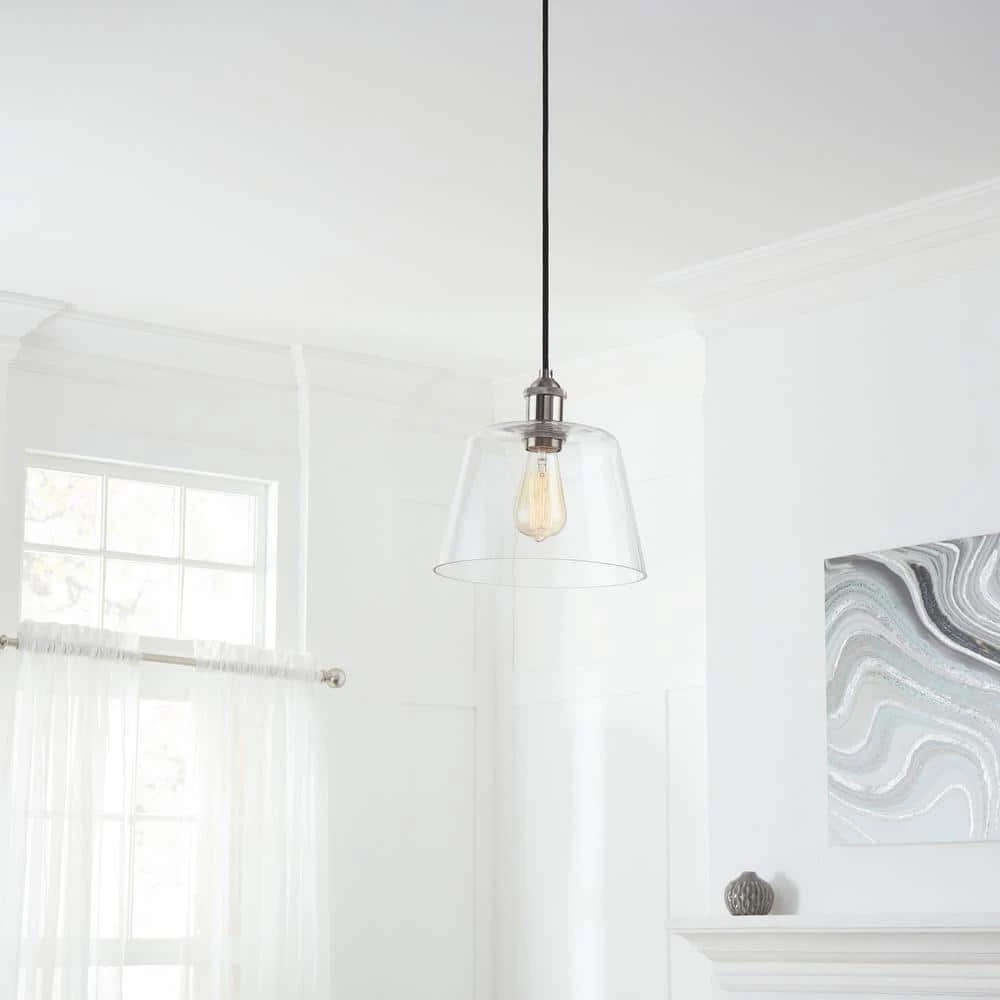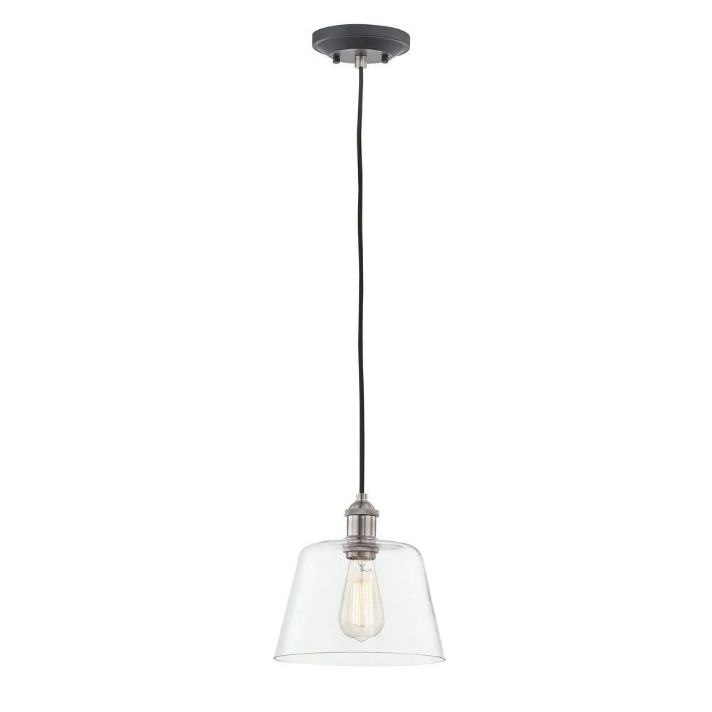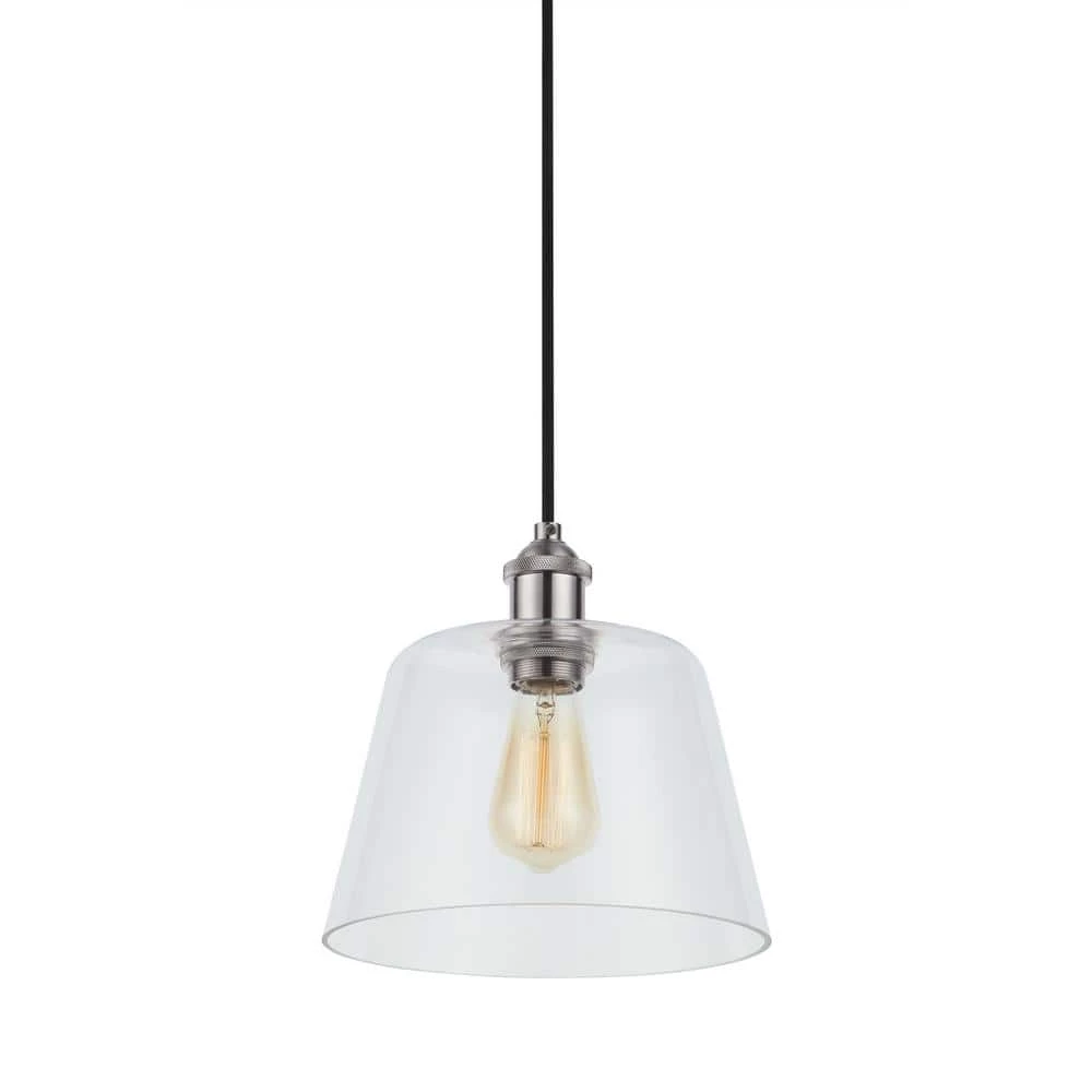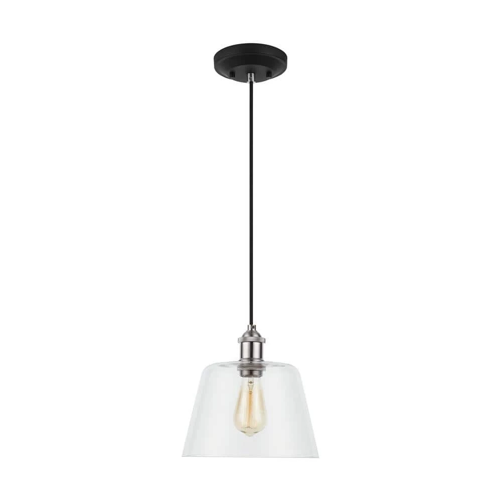 Simple yet striking in design. This pendant features a matte black frame with decorative nickel socket. A vintage style decorative bulb is set in a blown glass shade and provides warm and ample light.