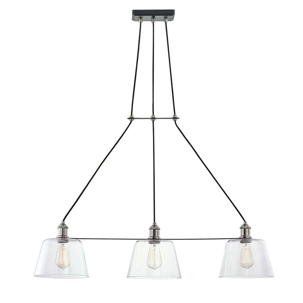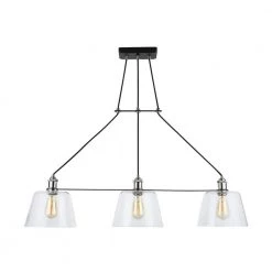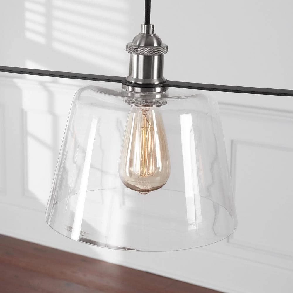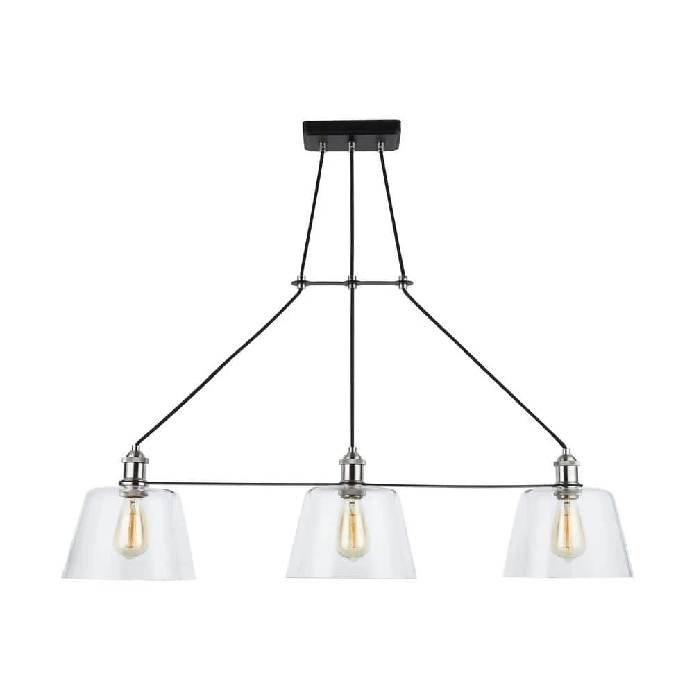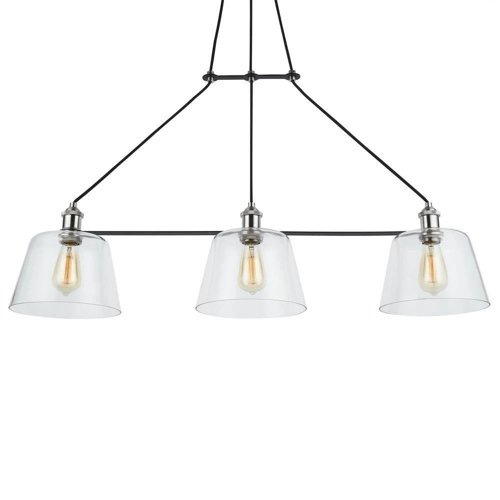 Simple yet striking in design, this dining pendant features a matte black frame with decorative nickel socket. Vintage style decorative bulbs are featured in the blown glass shades. This pendant will provide warm and ample light.