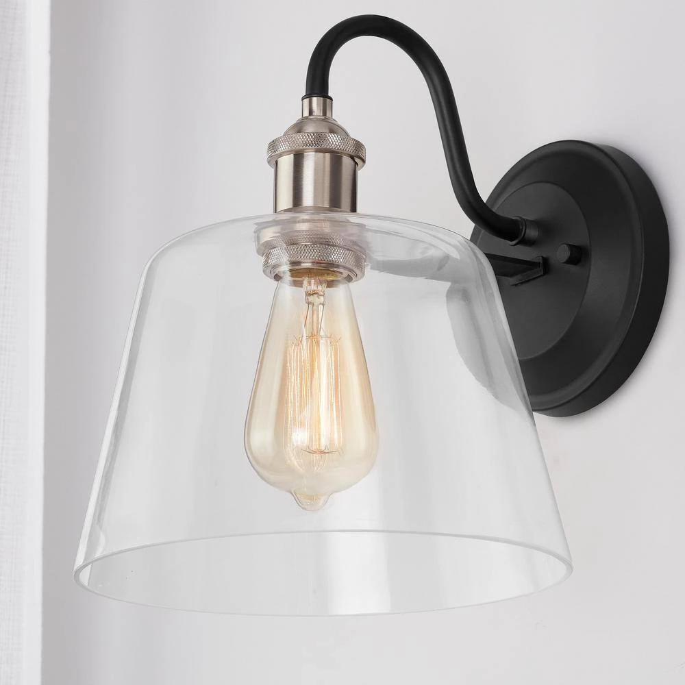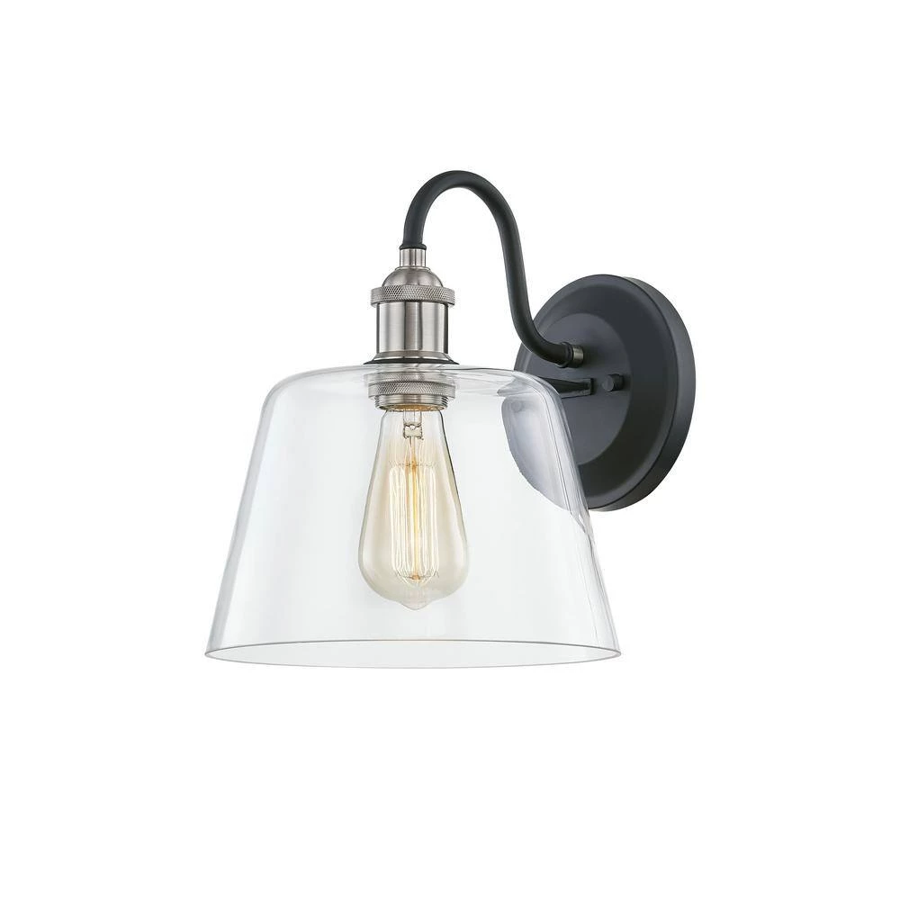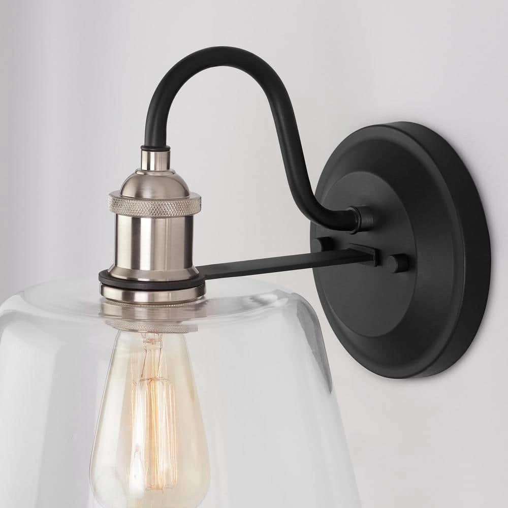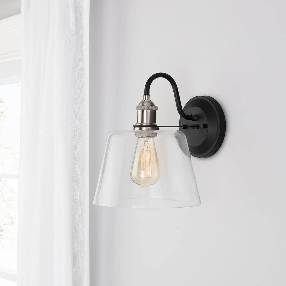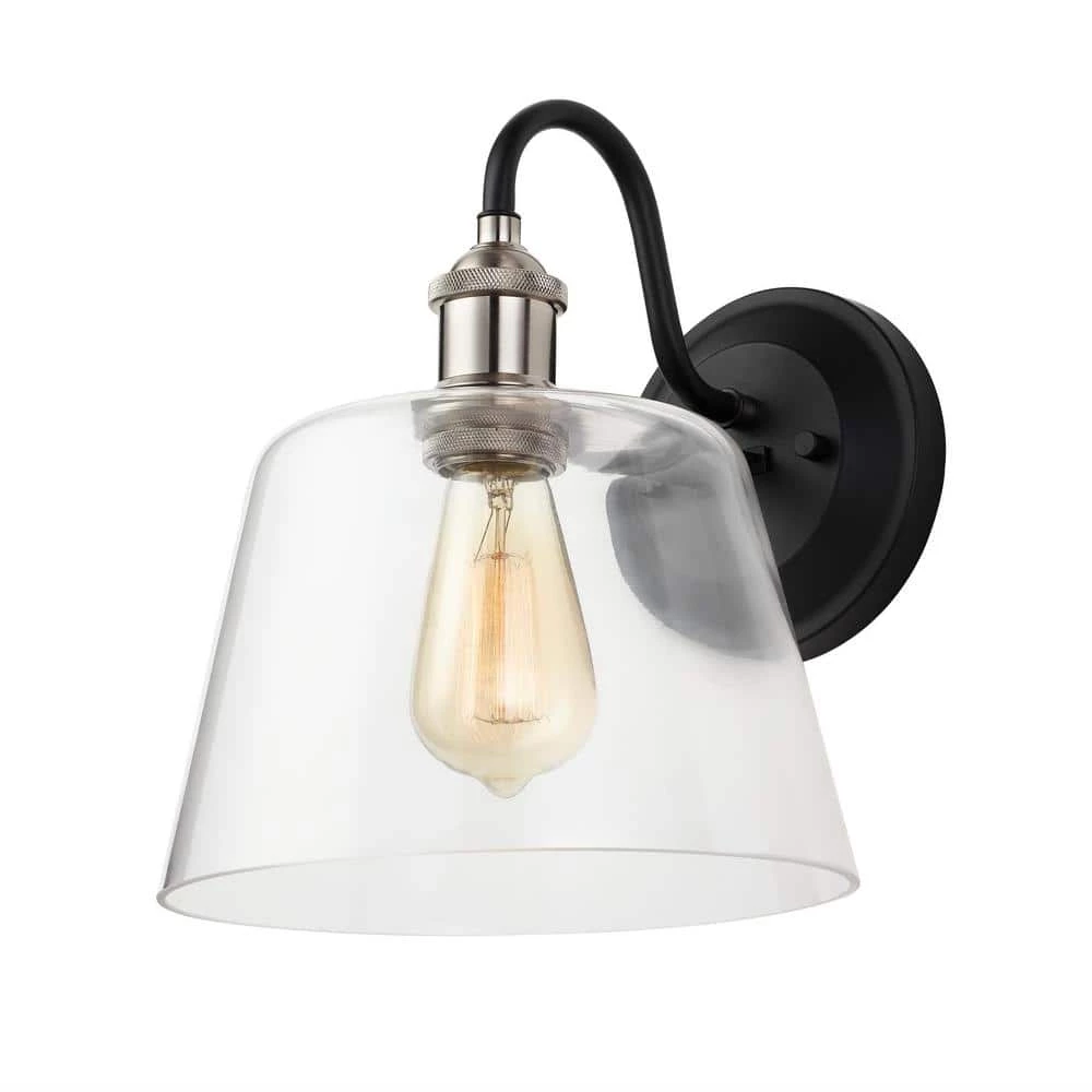 Simple yet striking in design, this wall sconce features a matte black frame with decorative nickel socket. A vintage style decorative bulb is set in a blown glass shade. This pendant provides warm and ample light.
