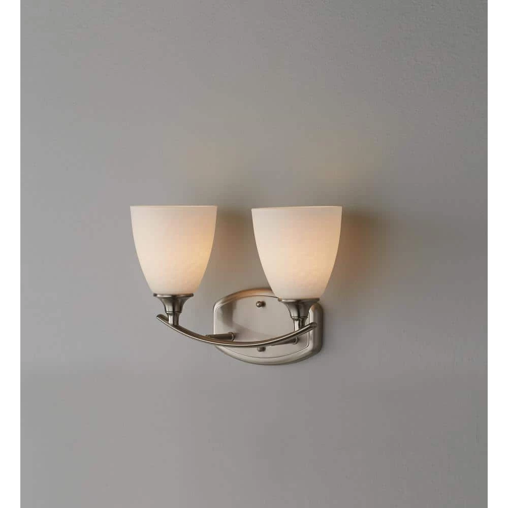 Simple and elegant, this fixture offers classic sophistication for transitional interiors. Free flowing forms of metal and etched marble glass are enhanced by a classic Brushed Nickel finish. This transitional style can transform bathroom switch its charming aesthetics.