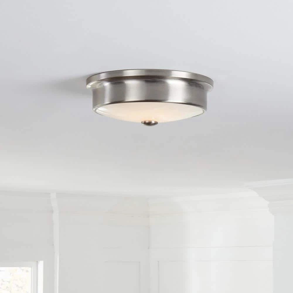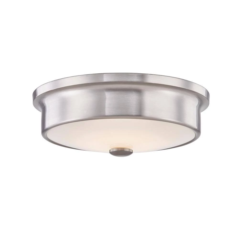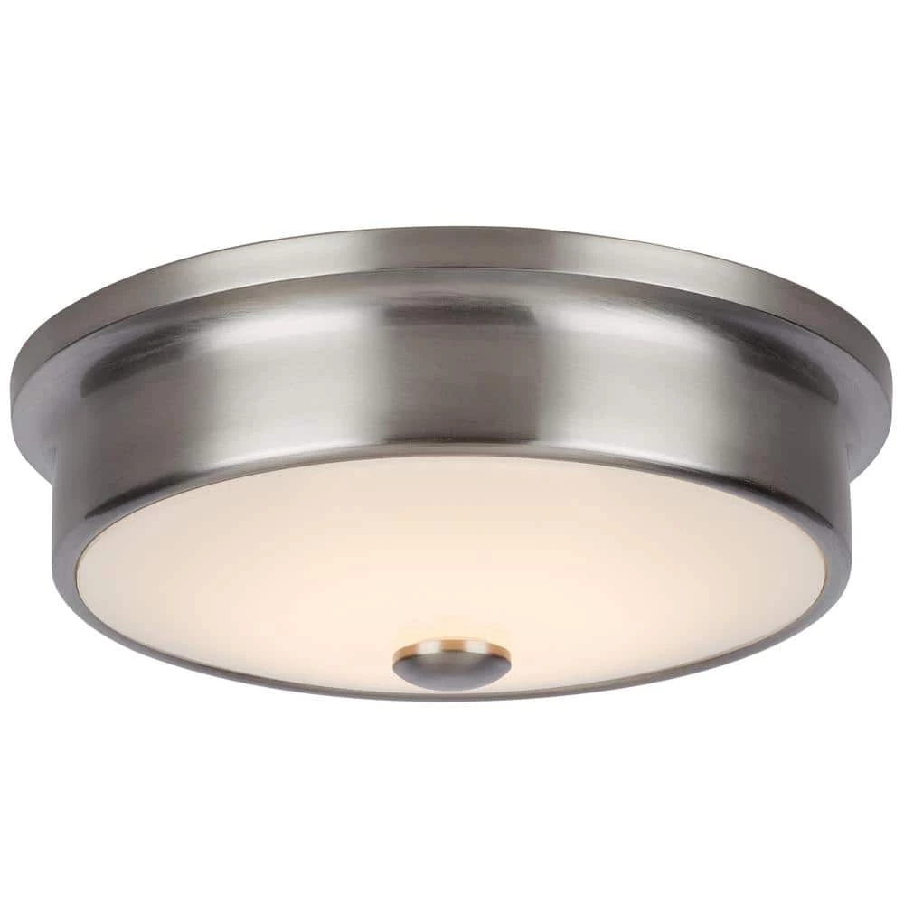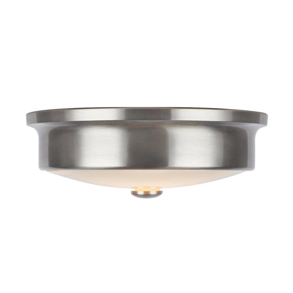 Add a touch of sophistication to any room, with this brushed nickel flush mount. The frame is low profile, and ideal for any ceiling height. The integrated LED means no bulbs need to be replaced, ever. The white glass shade gives soft yet ample light.