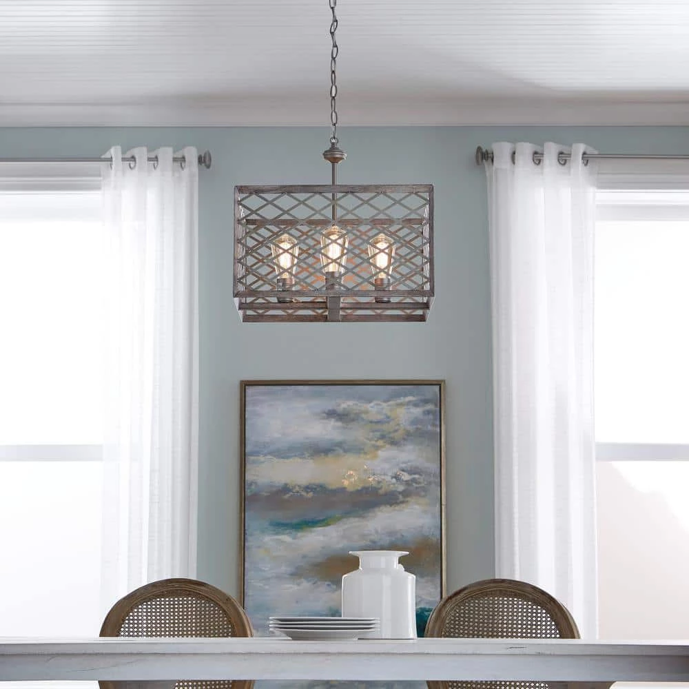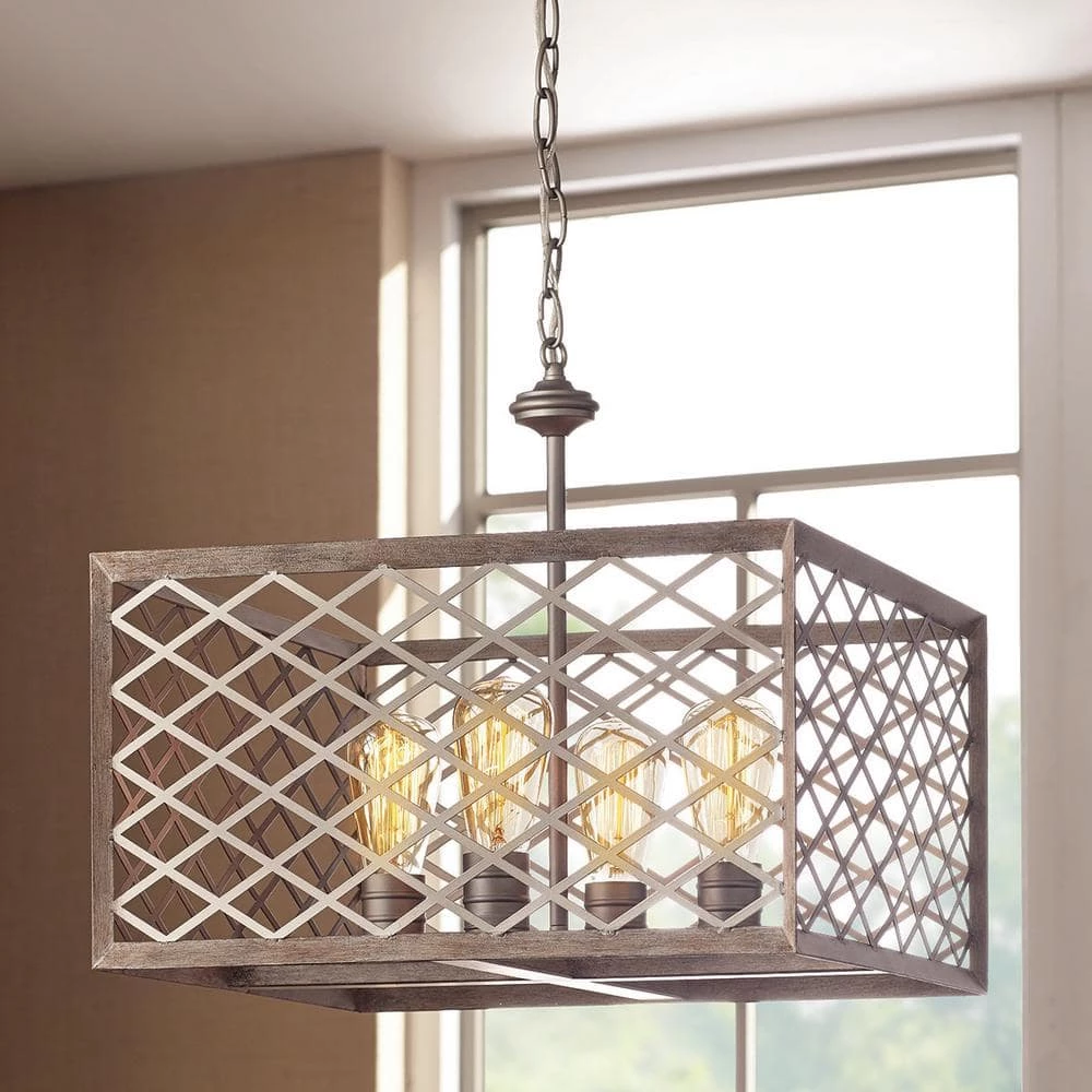 Its interweaving open cage frame and gilded pewter finish makes this 4-light pendant the perfect focal point above your kitchen island. Providing your space with bright illumination, this fixture brings a rustic, industrial look to your decor. Mix and match or use in a clusters for customized lighting designs.