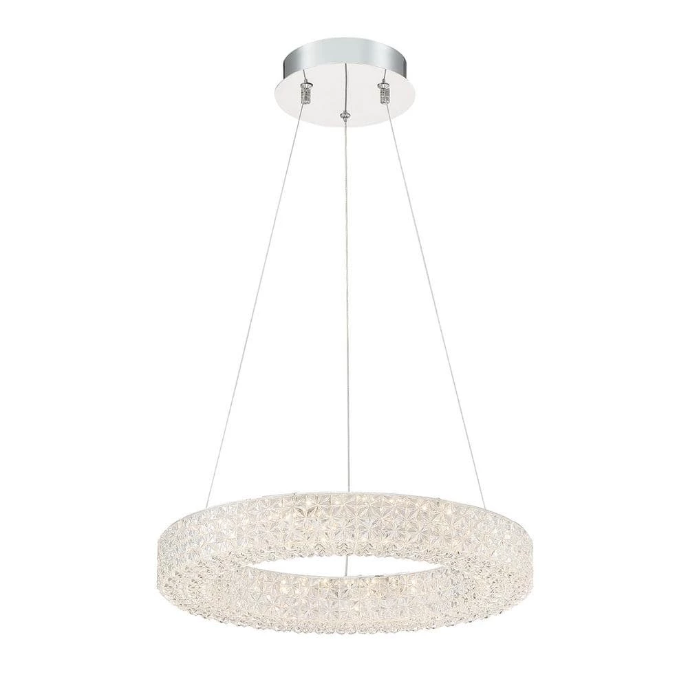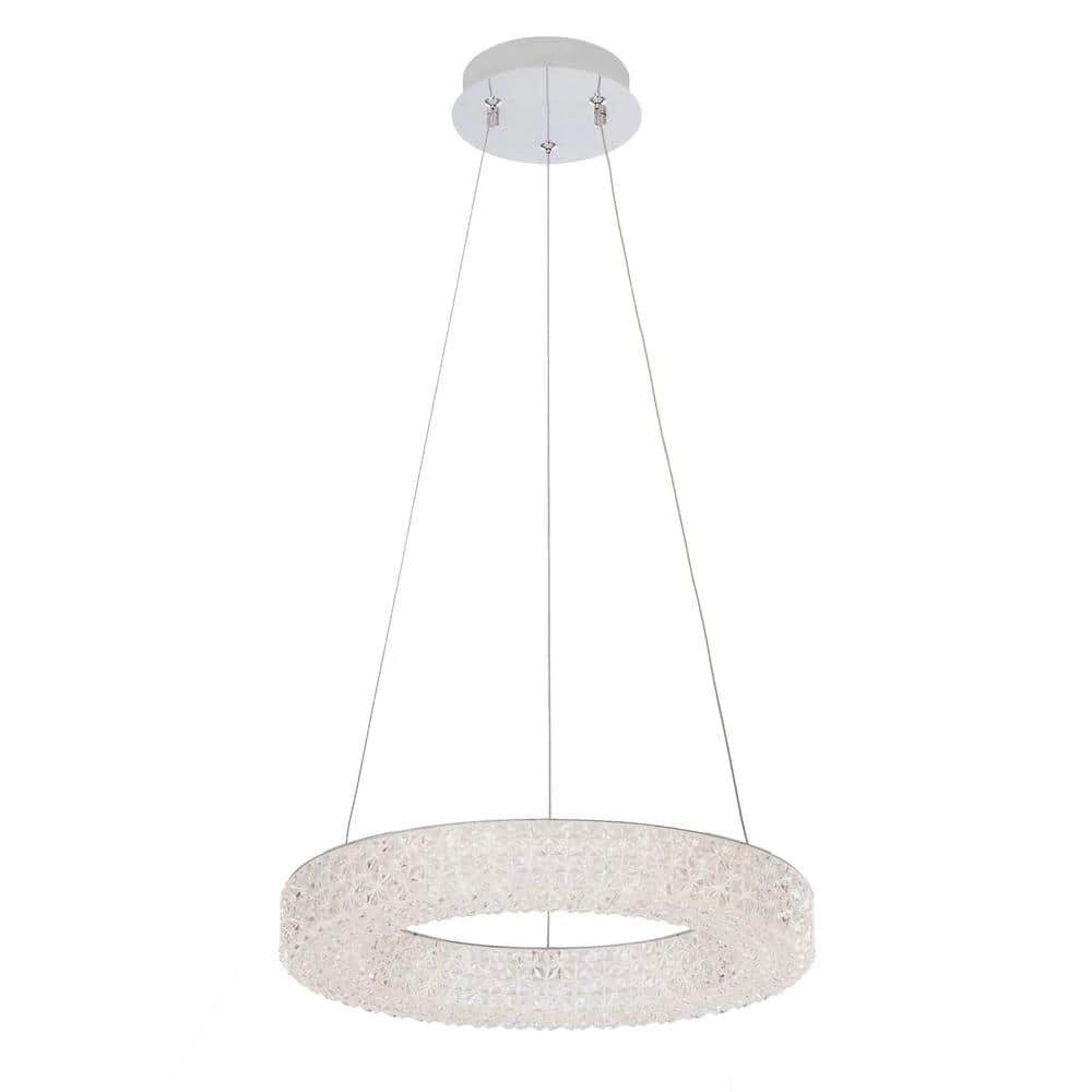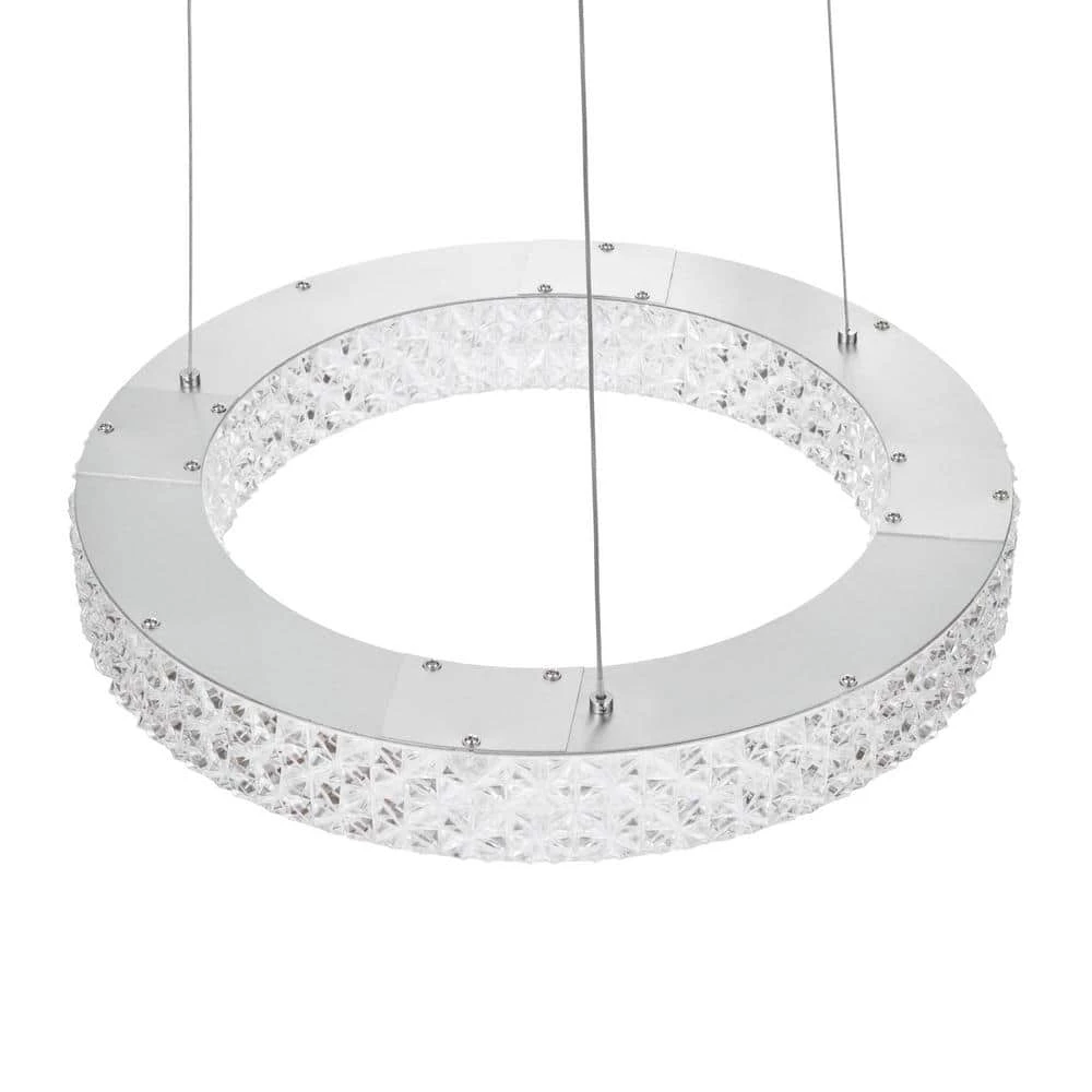 The Home Decorators LED Pendant is where traditional crystal look and contemporary design meet. Crystal cut clear Acrylic is arranged to form a ring, lighting the space with modern LED lighting. The illumination also refracts and reflects through the Acrylic, creating a uniquely beautiful wash of light, its opulence and illumination will become an instant focal point of your space.